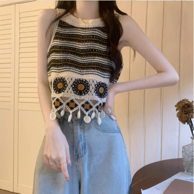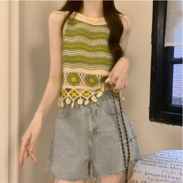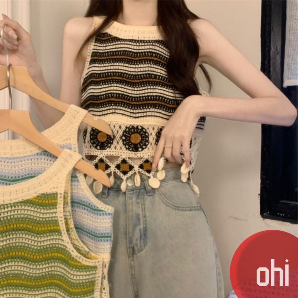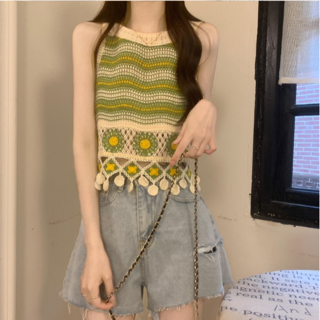 【ohi】性感縷空花多針織吊帶背心 無袖上衣 設計感流蘇 女生上衣 針織上衣 女裝 顯瘦上衣 韓版上衣 GWD3701黑色,F碼(40-65KG可穿)|綠色,F碼(40-65KG可穿)|藍色,F碼(40-65KG可穿)OthersOHI衣著