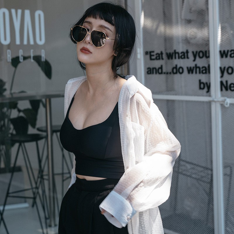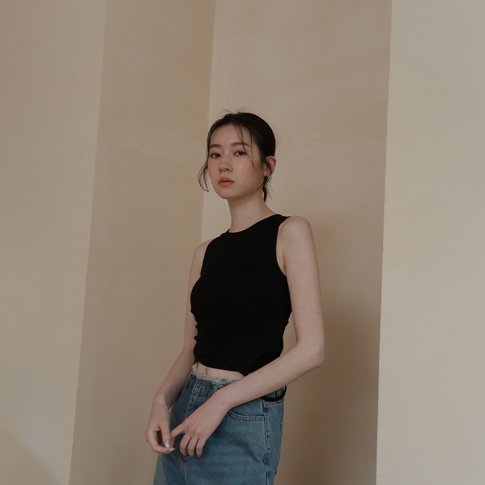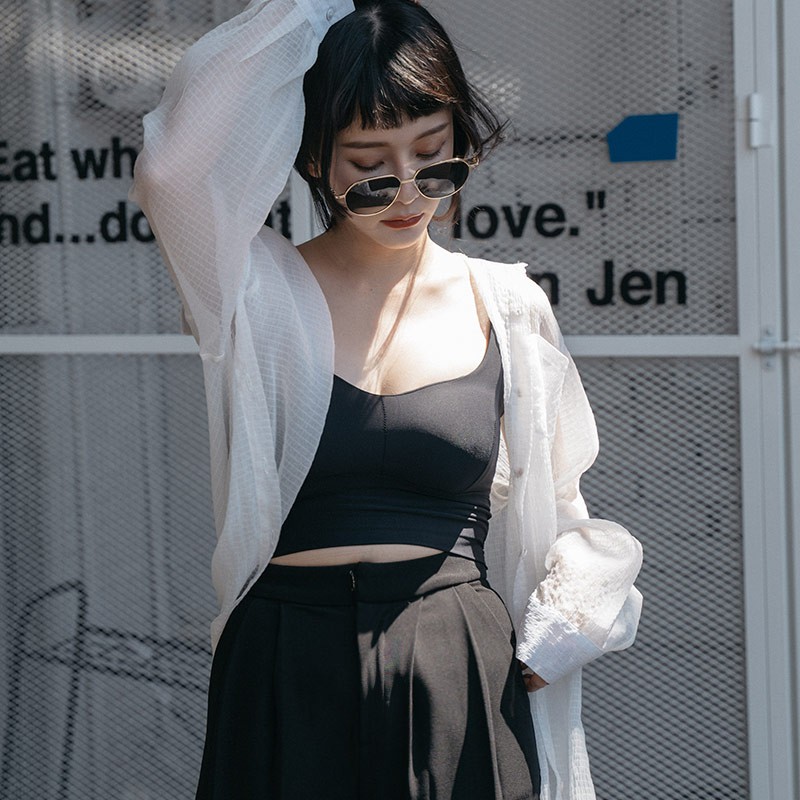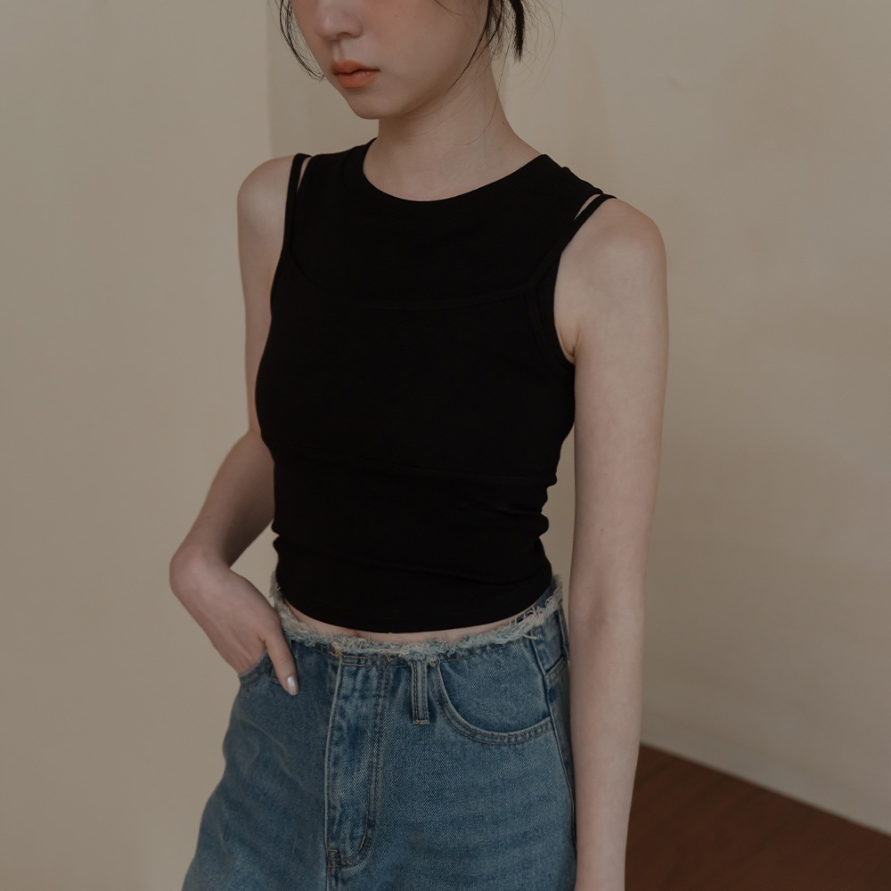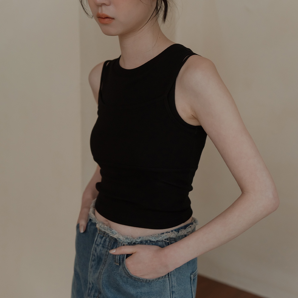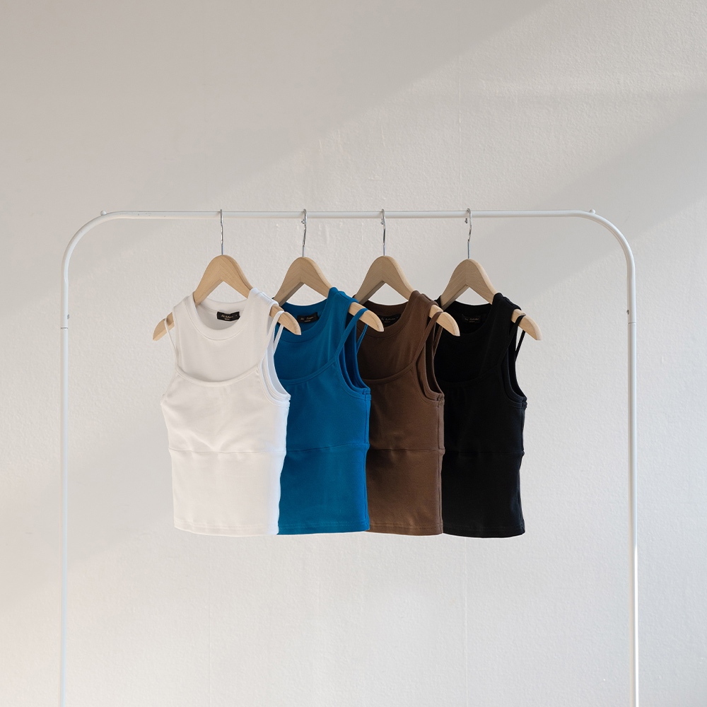 QUEENSHOP_ S 女裝 質感假兩件削肩Bra Top背心-黑 現+預 【01041904】黑Tanks & CamisolesQUEENSHOP