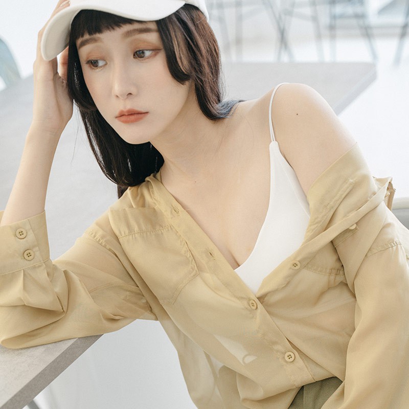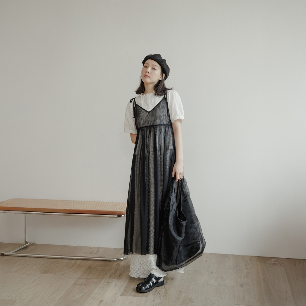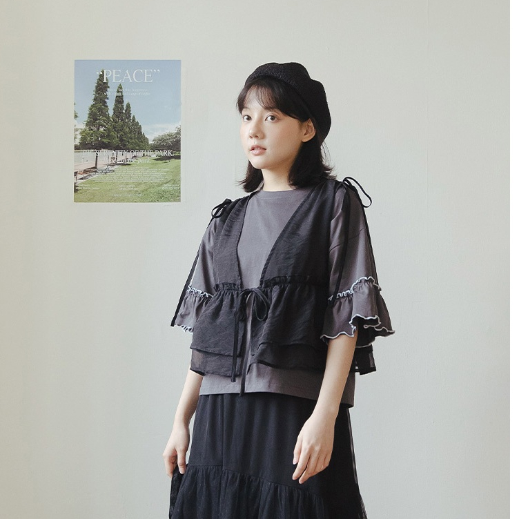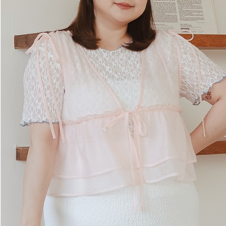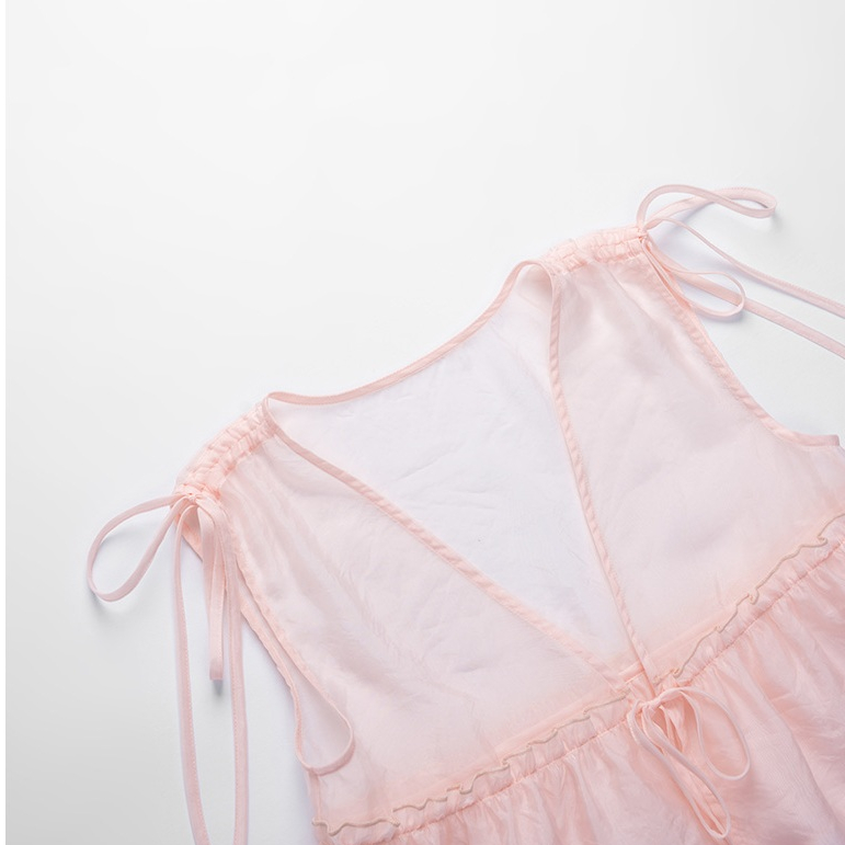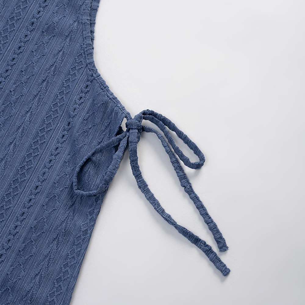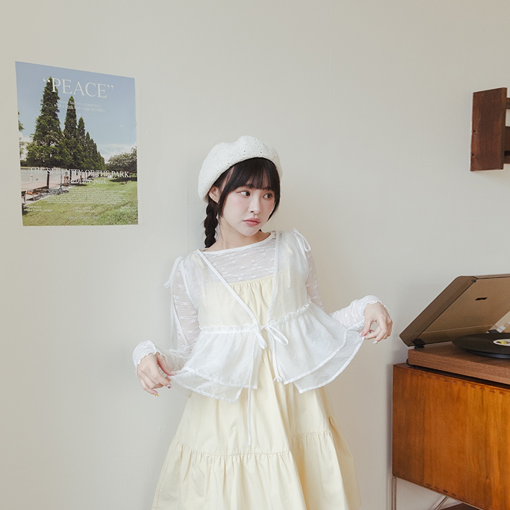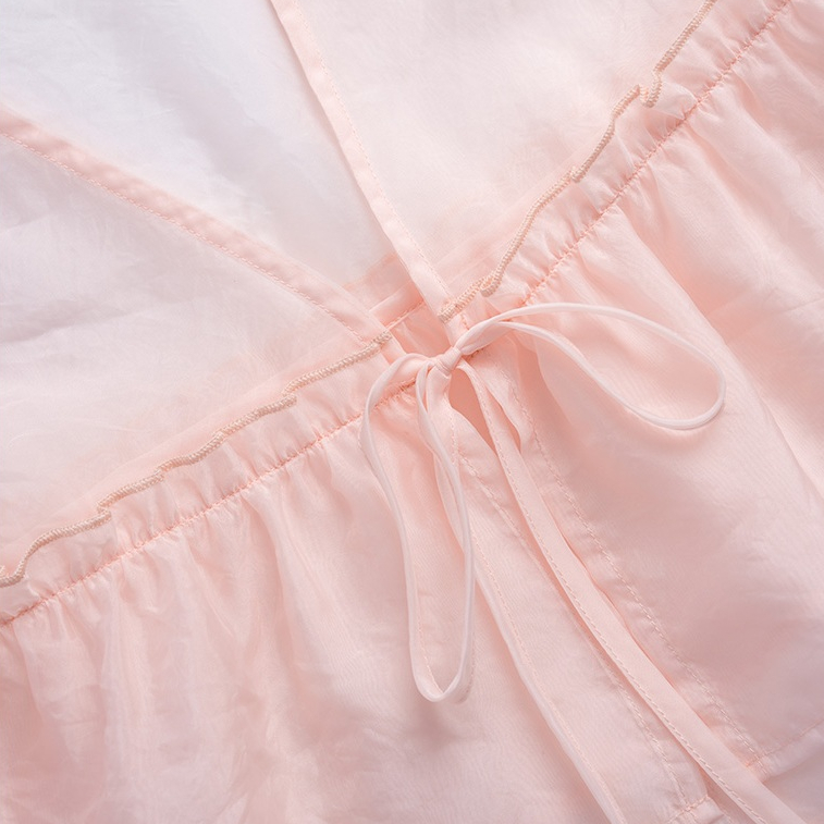 QUEENSHOP_ S 女裝 緹花側綁帶造型長細肩罩衫 四色售 現+預 【01098995】黑|粉|藍|杏QUEENSHOP
