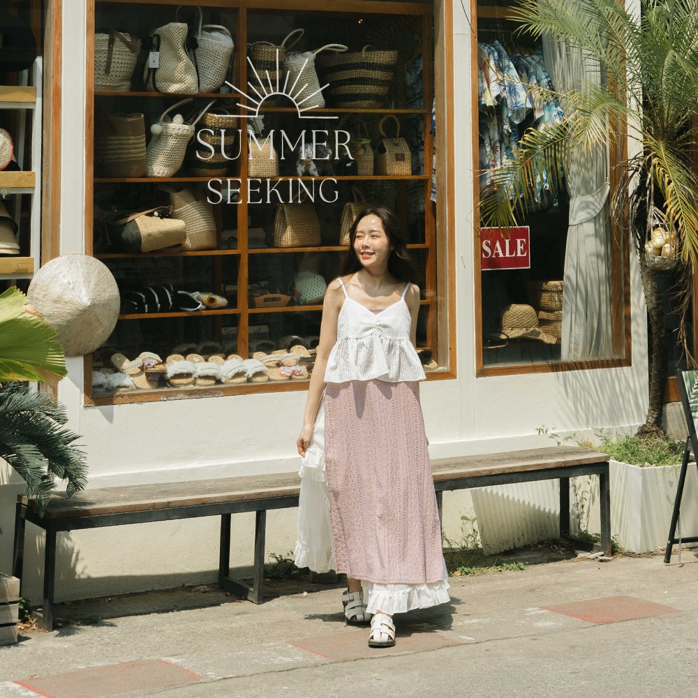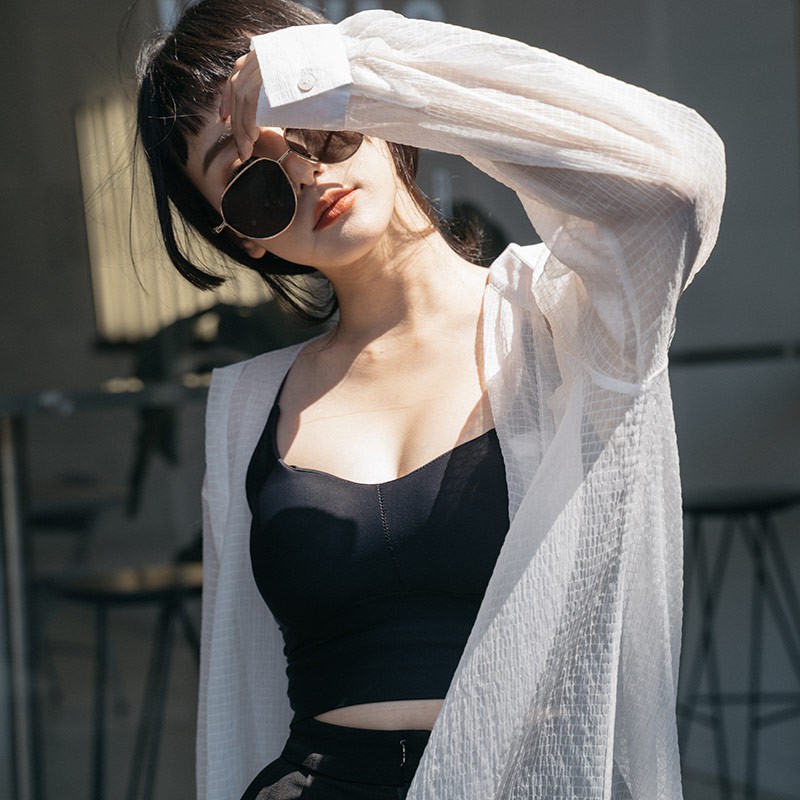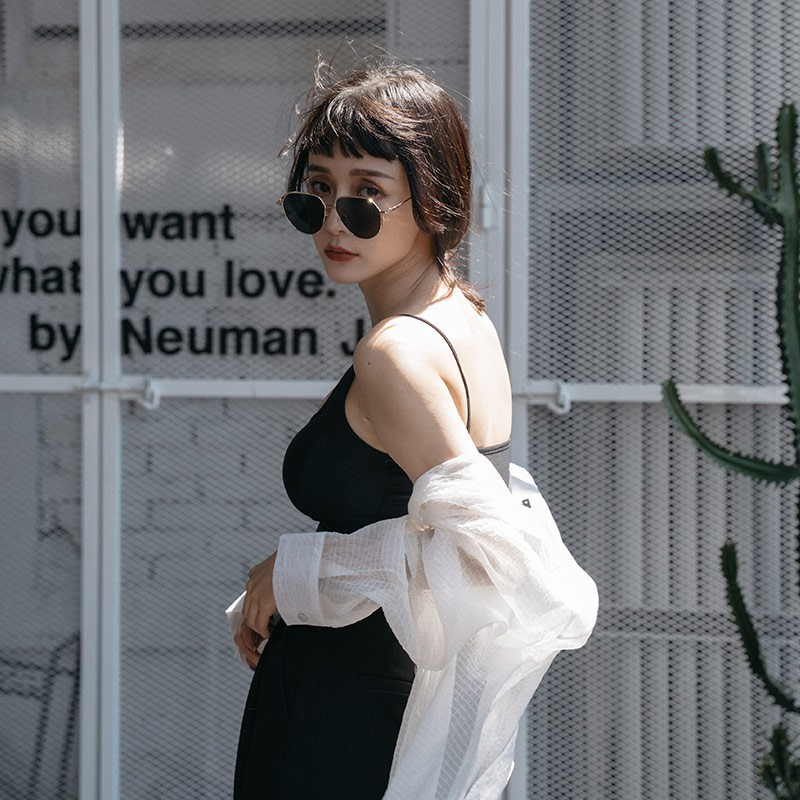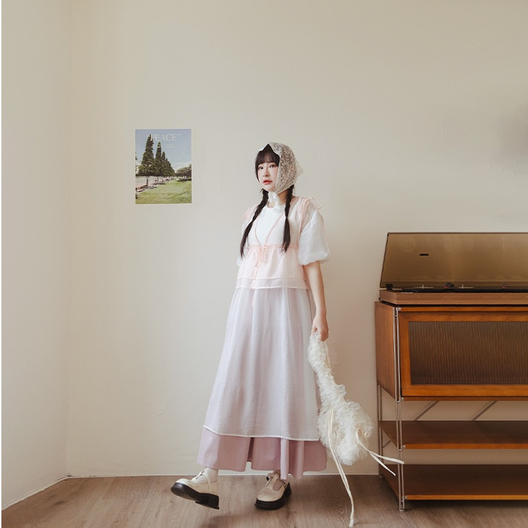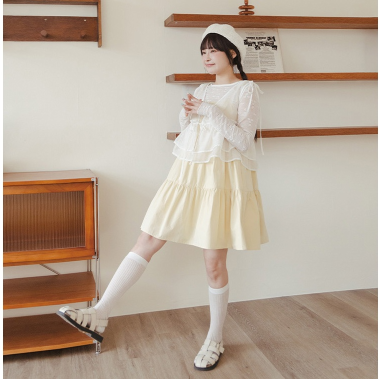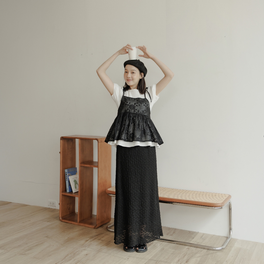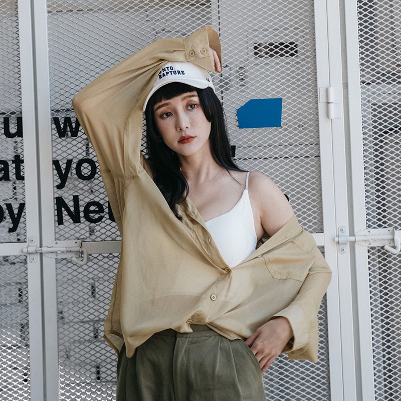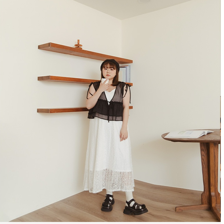 QUEENSHOP_ S 女裝 緹花側綁帶造型長細肩罩衫 四色售 現+預 【01098995】黑|粉|藍|杏QUEENSHOP