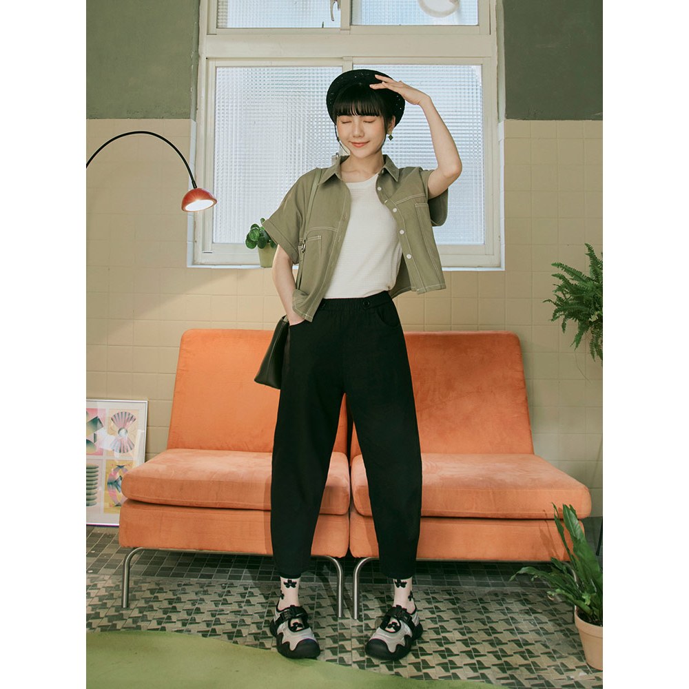 OB嚴選 純棉可調式排釦腰鬆緊九分哈倫褲 《BA7461》日系/大尺碼/現貨/女裝卡其,S|卡其,M|卡其,L|卡其,XL|卡其,2L|卡其,3L|黑,M|黑,L|黑,XL|黑,2L|黑,3L|草綠,S|草綠,M|草綠,L|草綠,XL|草綠,2L|草綠,3L|黑,SPantsOB嚴選官方旗艦店