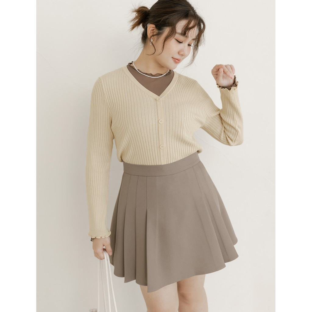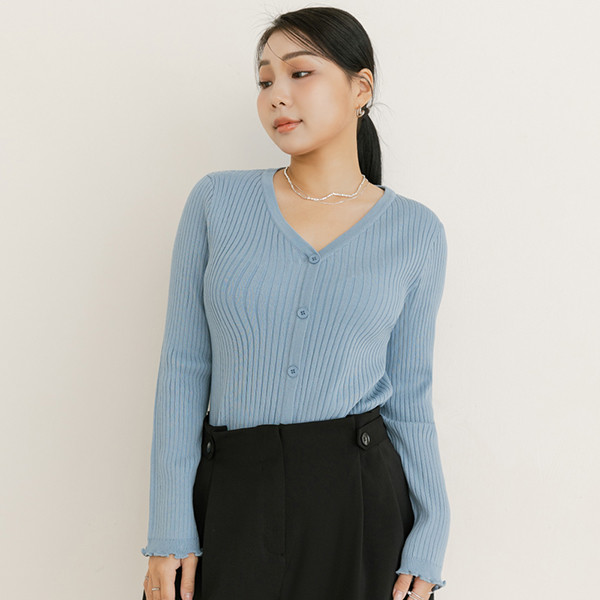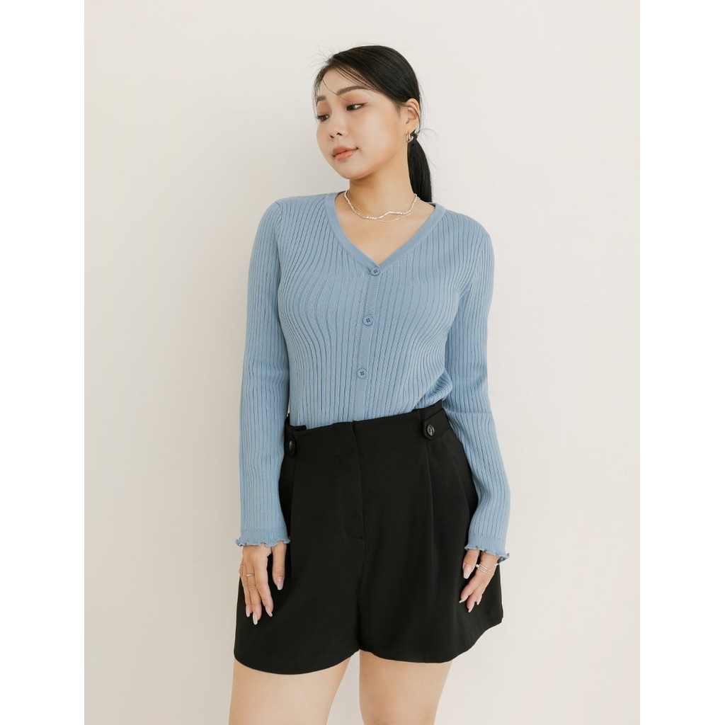 【PolyLulu】 MISS.韓系V領假排釦坑條木耳邊長袖上衣 中大尺碼上衣藍色,L|藍色,XL|杏色,2XL|杏色,3XL|藍色,2XL|藍色,3XL|杏色,L|杏色,XLPOLY LULU丨BEAUTY HAS NO SIZE 中大尺碼女裝