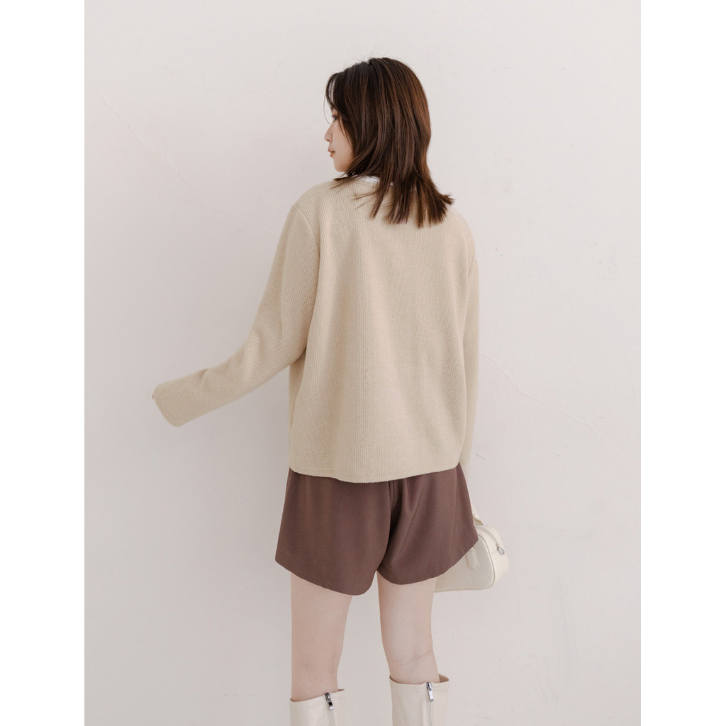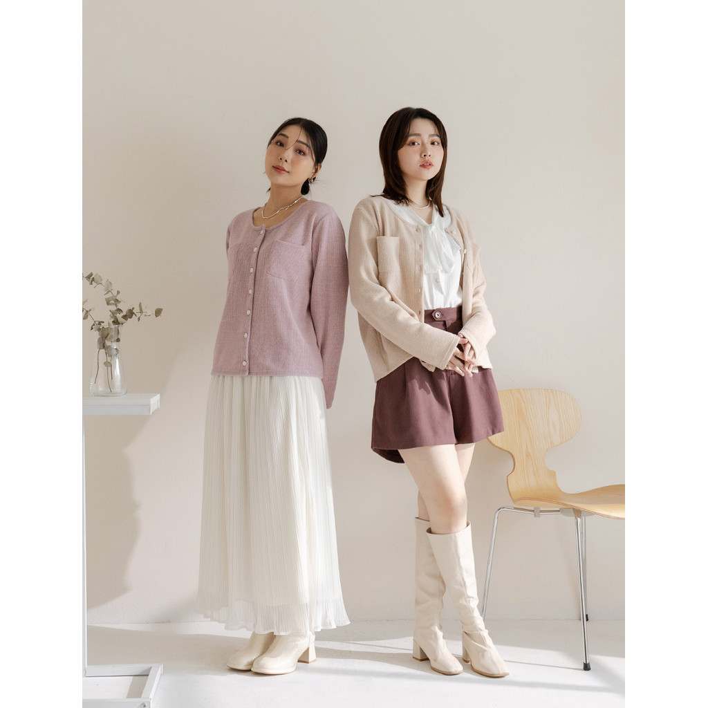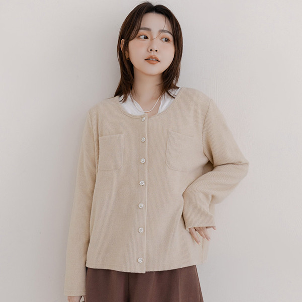 【PolyLulu】 MISS.韓系歐膩珍珠釦圓領坑條長袖外套 中大尺碼外套 杏色L|XL|2XL|3XLPOLY LULU丨BEAUTY HAS NO SIZE 中大尺碼女裝