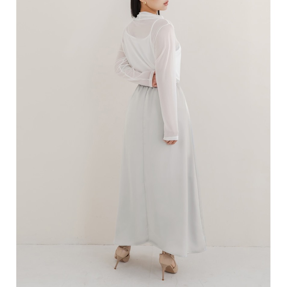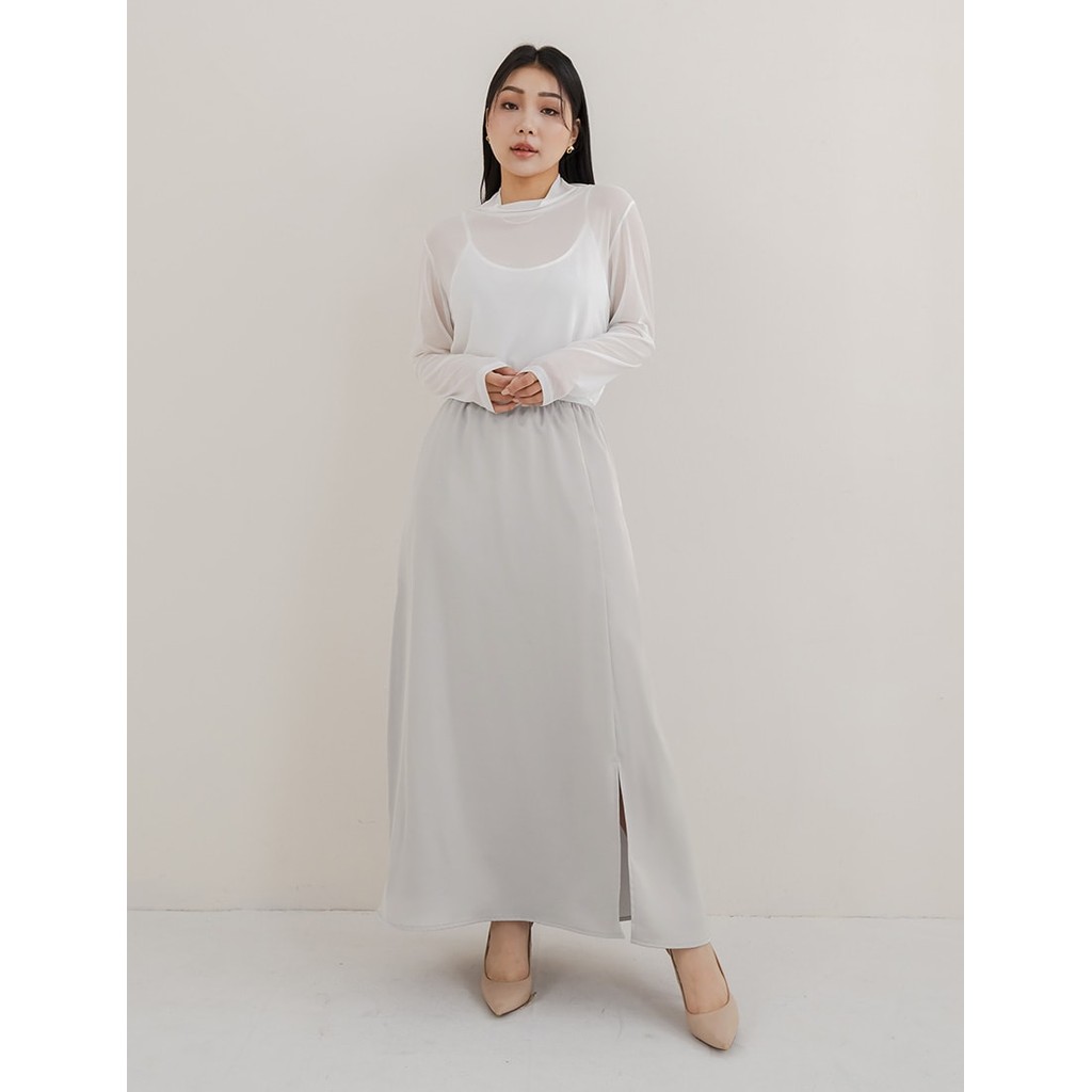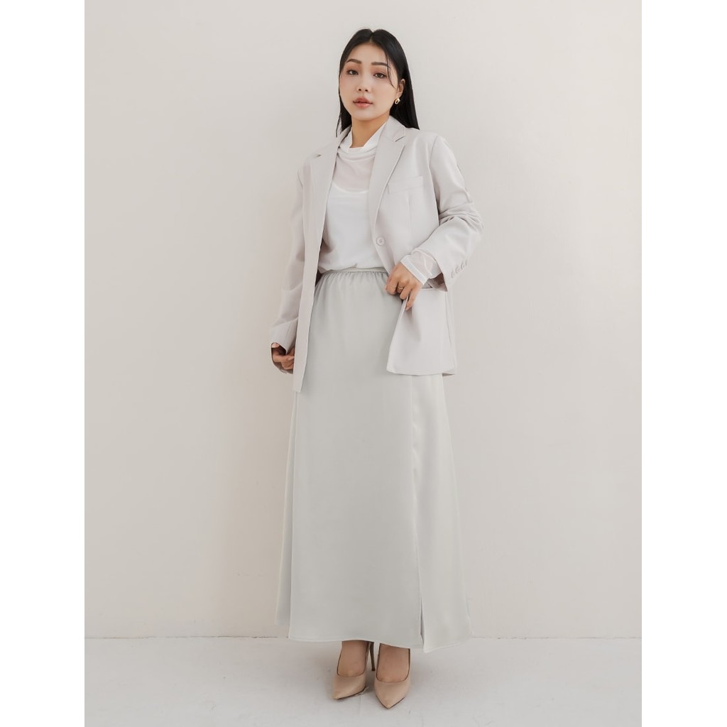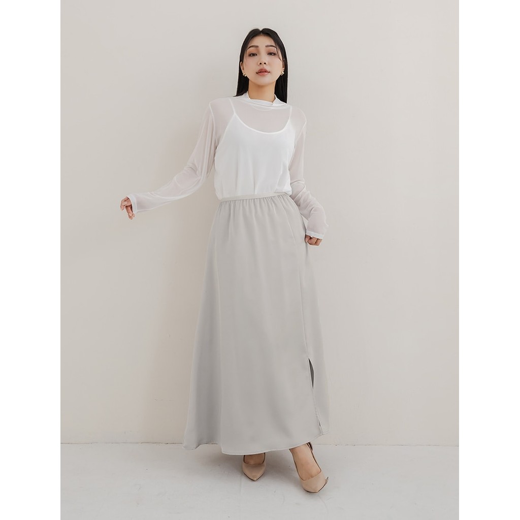 【PolyLulu】 MISS.仙女氣質微光澤緞面開衩鬆緊傘襬長裙 中大尺碼裙子 銀灰色L|XL|2XL|3XLPOLY LULU丨BEAUTY HAS NO SIZE 中大尺碼女裝