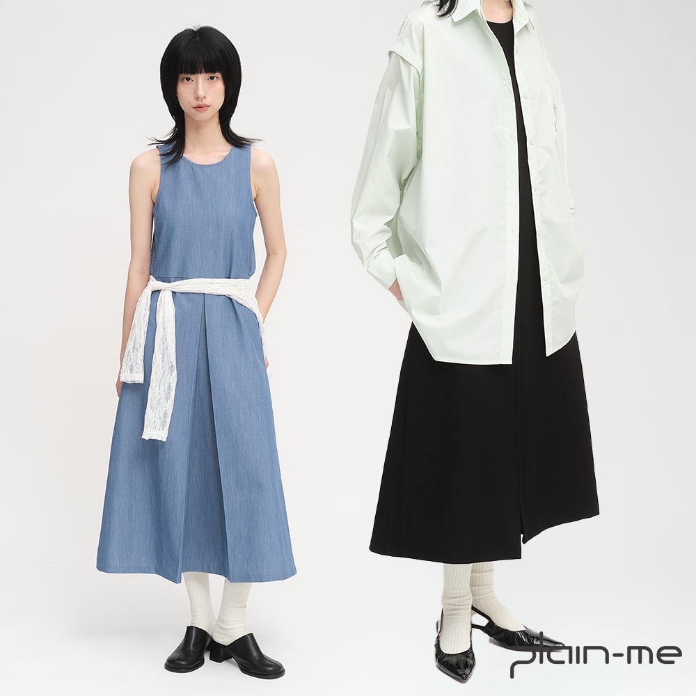 plain-me [SAAKO 合褶露背] 洋裝 長裙 裙 裙子 女下身 [SAA5032-252]牛仔藍,S|牛仔藍,M|牛仔藍,L|黑,S|黑,M|黑,Lplain-me 官方旗艦店