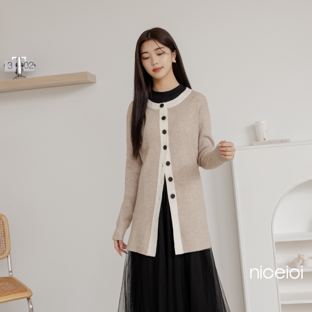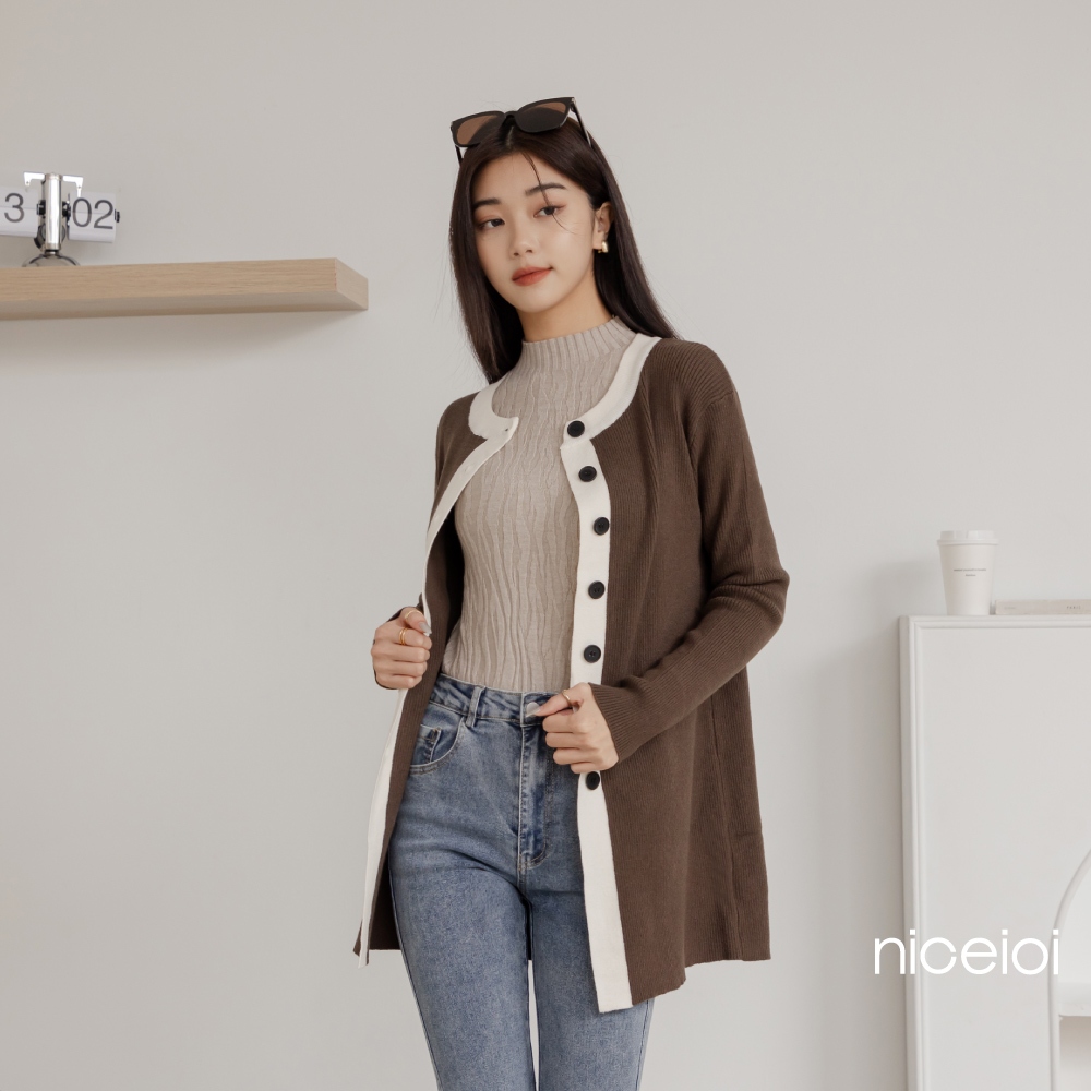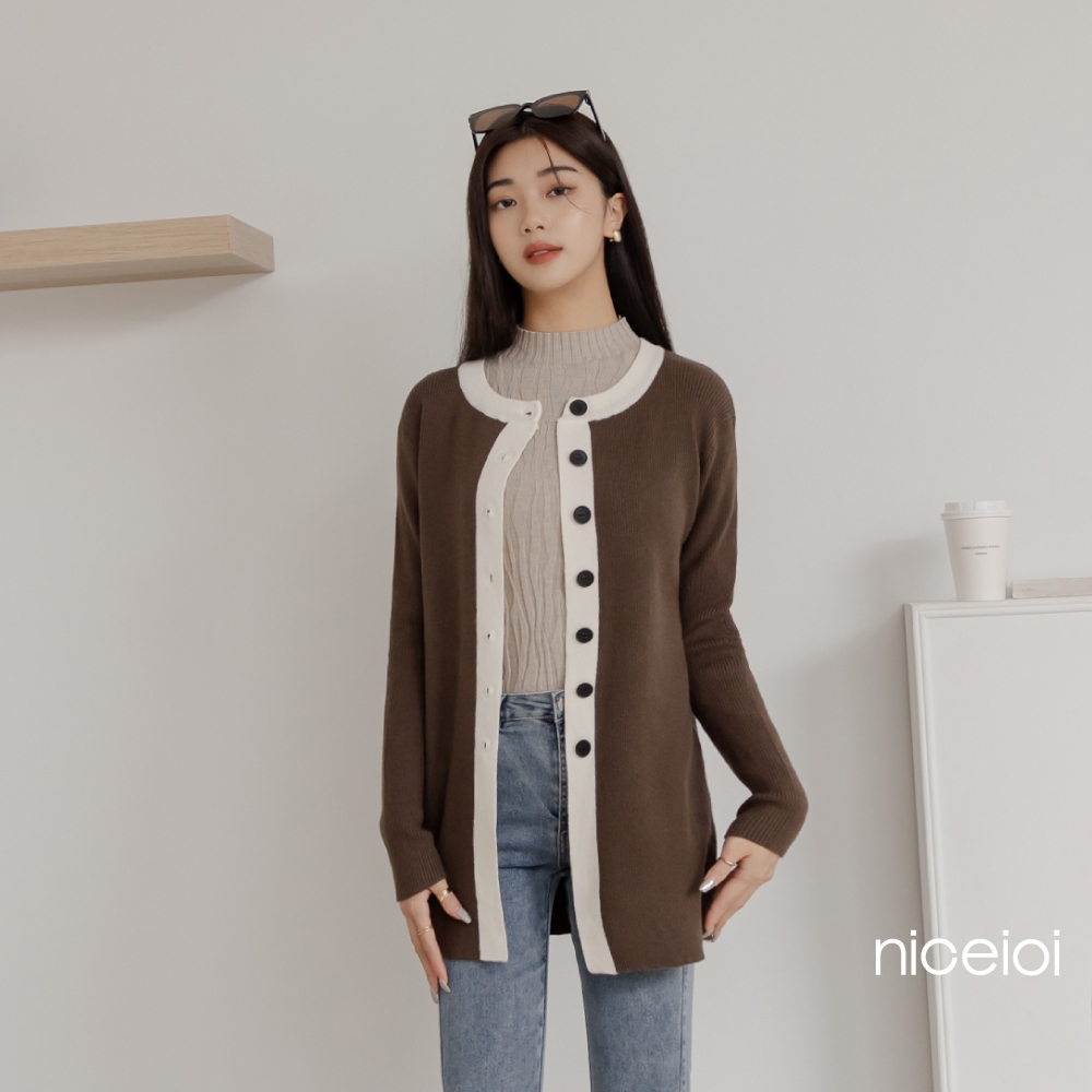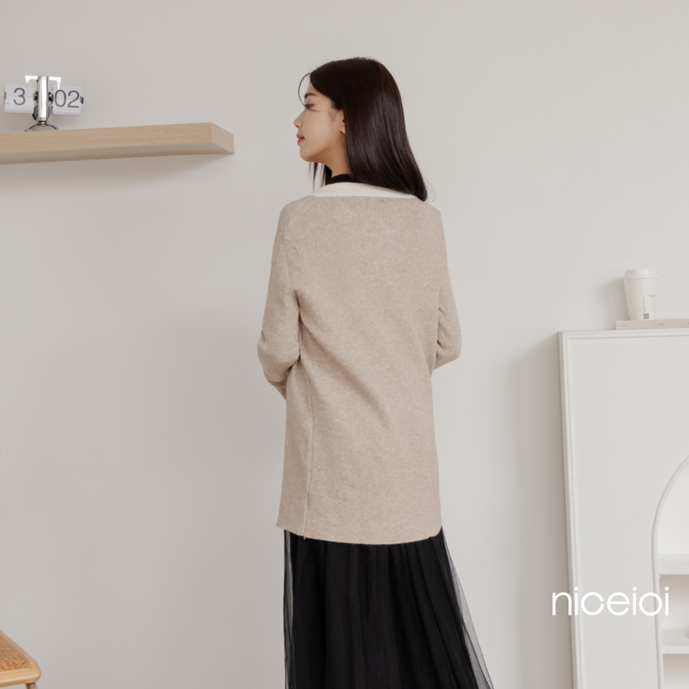niceioi【特惠】韓系長版坑條針織上衣 (共2色) 女裝咖綠,F|卡其,Fniceioi 官方旗艦店