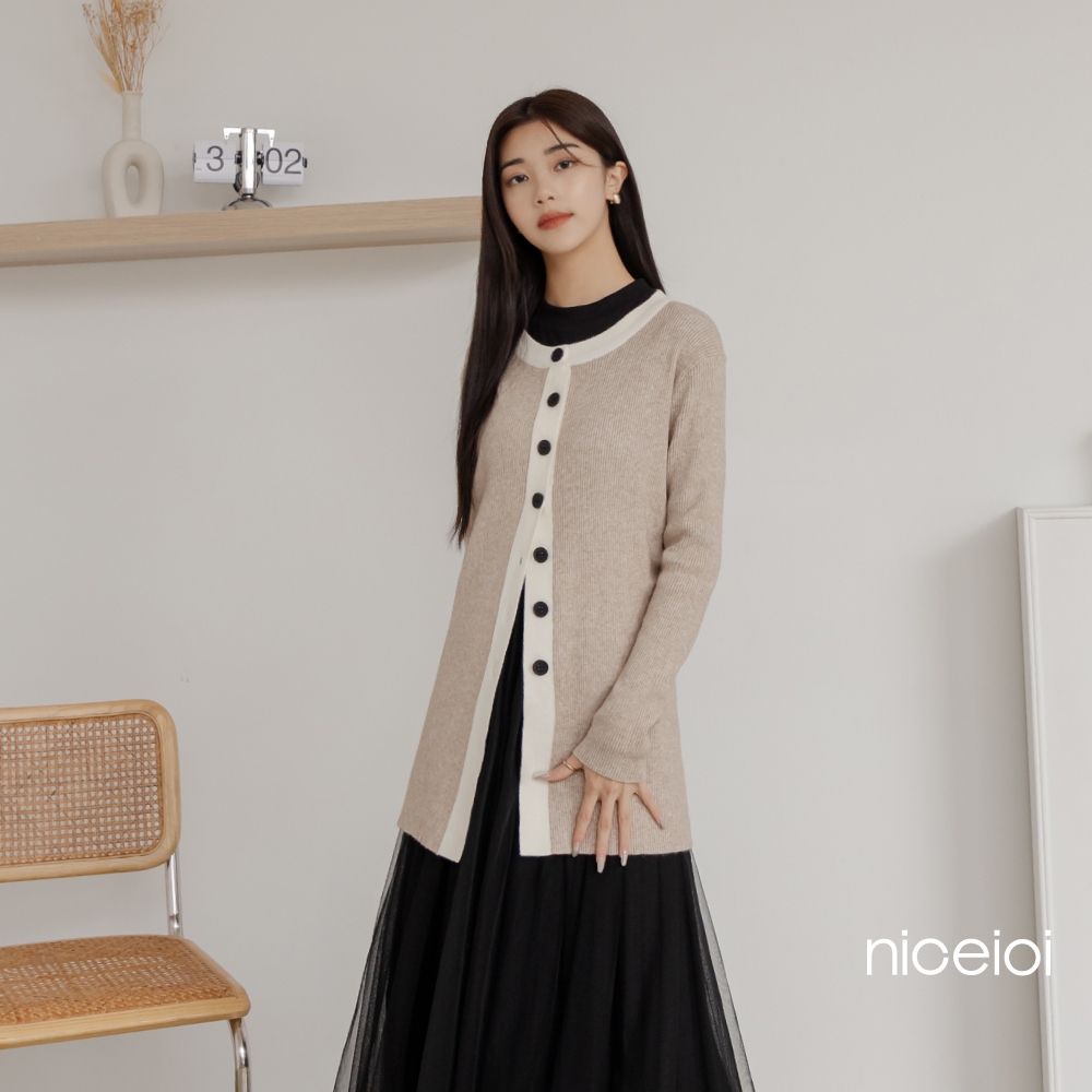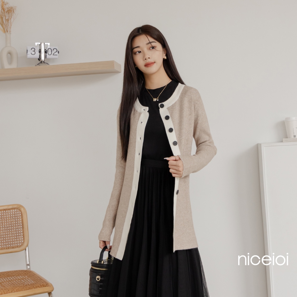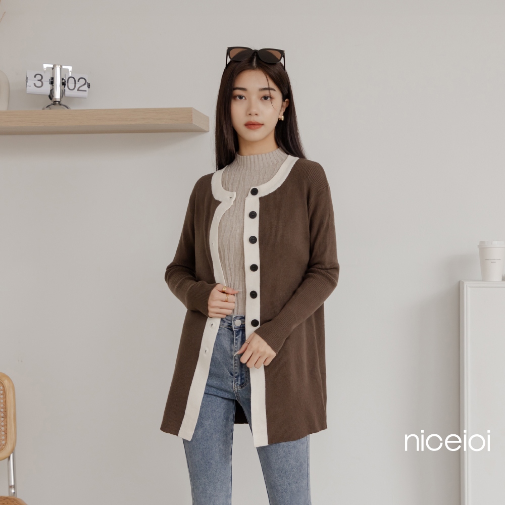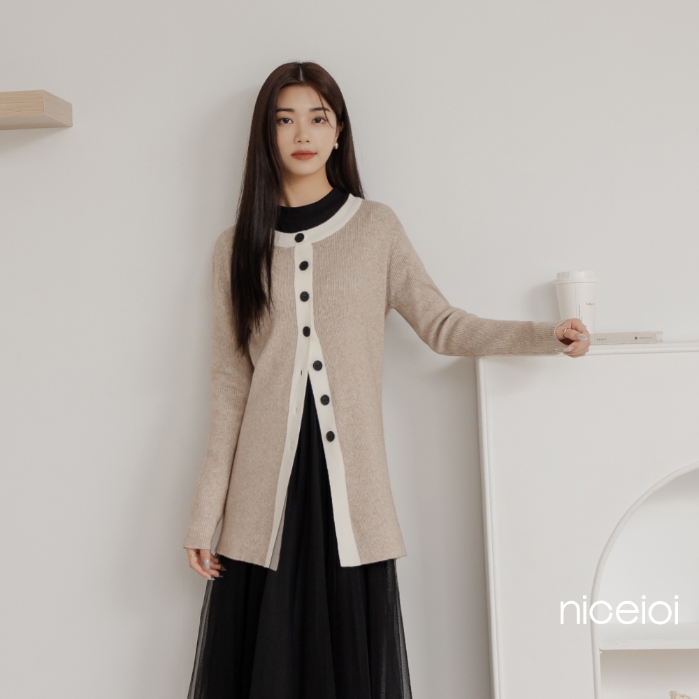 niceioi【特惠】韓系長版坑條針織上衣 (共2色) 女裝咖綠,F|卡其,Fniceioi 官方旗艦店