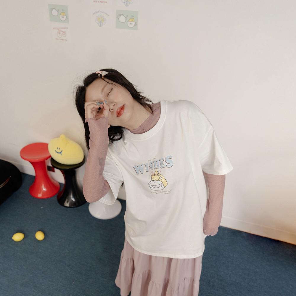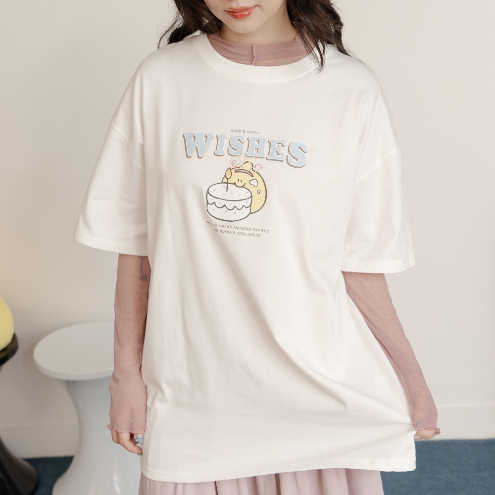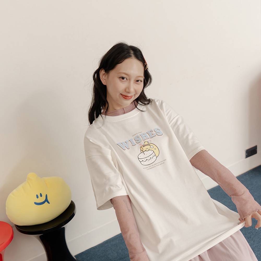 QUEENSHOP_ S 女裝 聯名 Second Morning 生日許願印圖短袖上衣 現+預 【01190250】依賣場T-shirtsQUEENSHOP