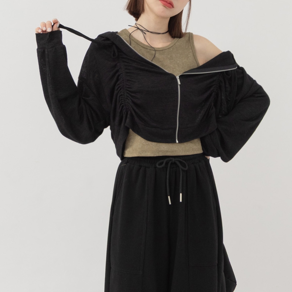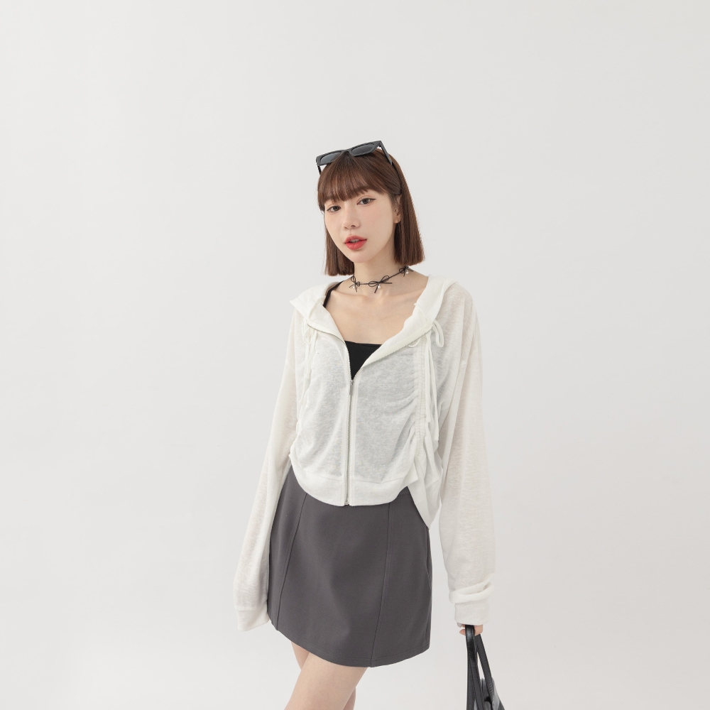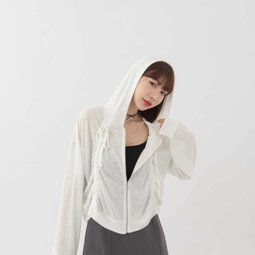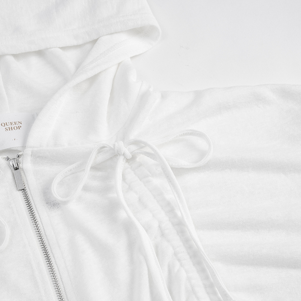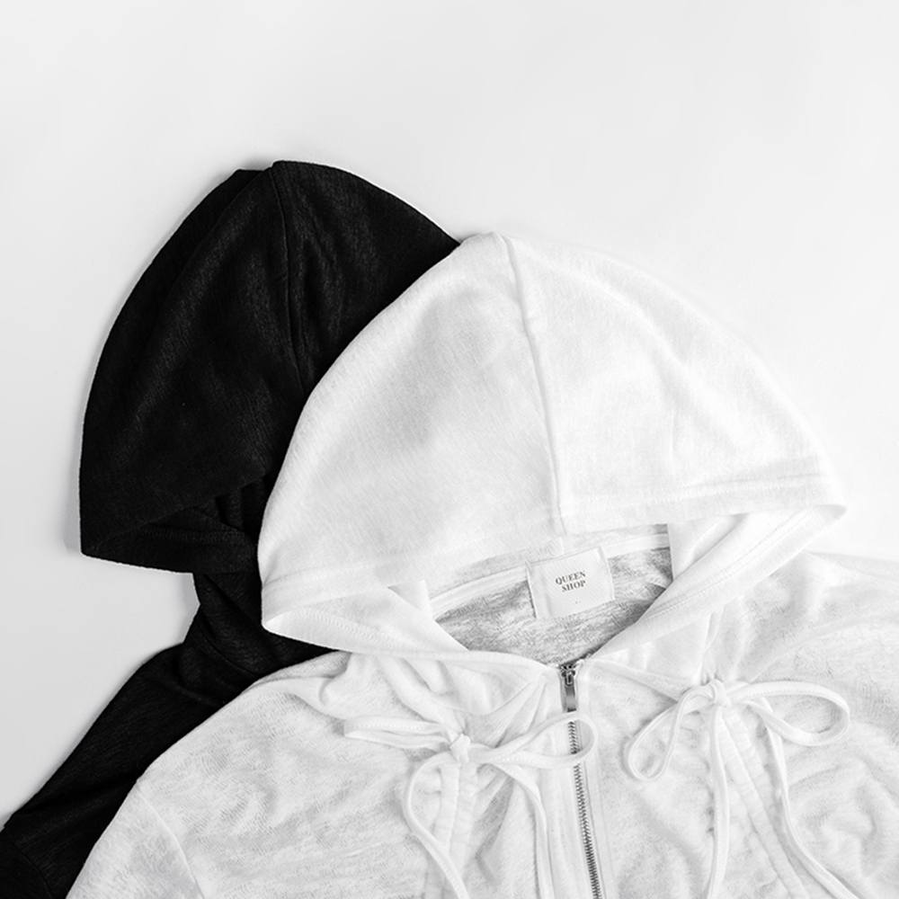 QUEENSHOP_ S 女裝 長袖 抽皺綁帶微透膚連帽外套 兩色售 現+預 【02020578】黑|白OthersQUEENSHOP