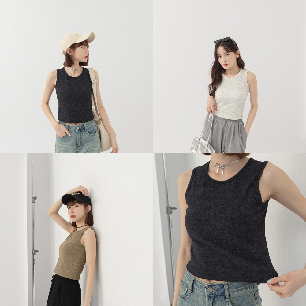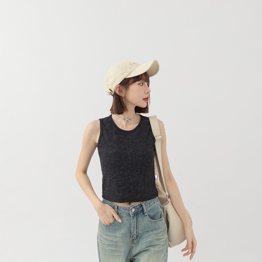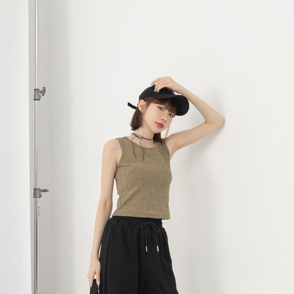 QUEENSHOP_ S 女裝 洗舊渲染設計削肩背心 三色售 現+預 【01150432】黑|白|綠OthersQUEENSHOP