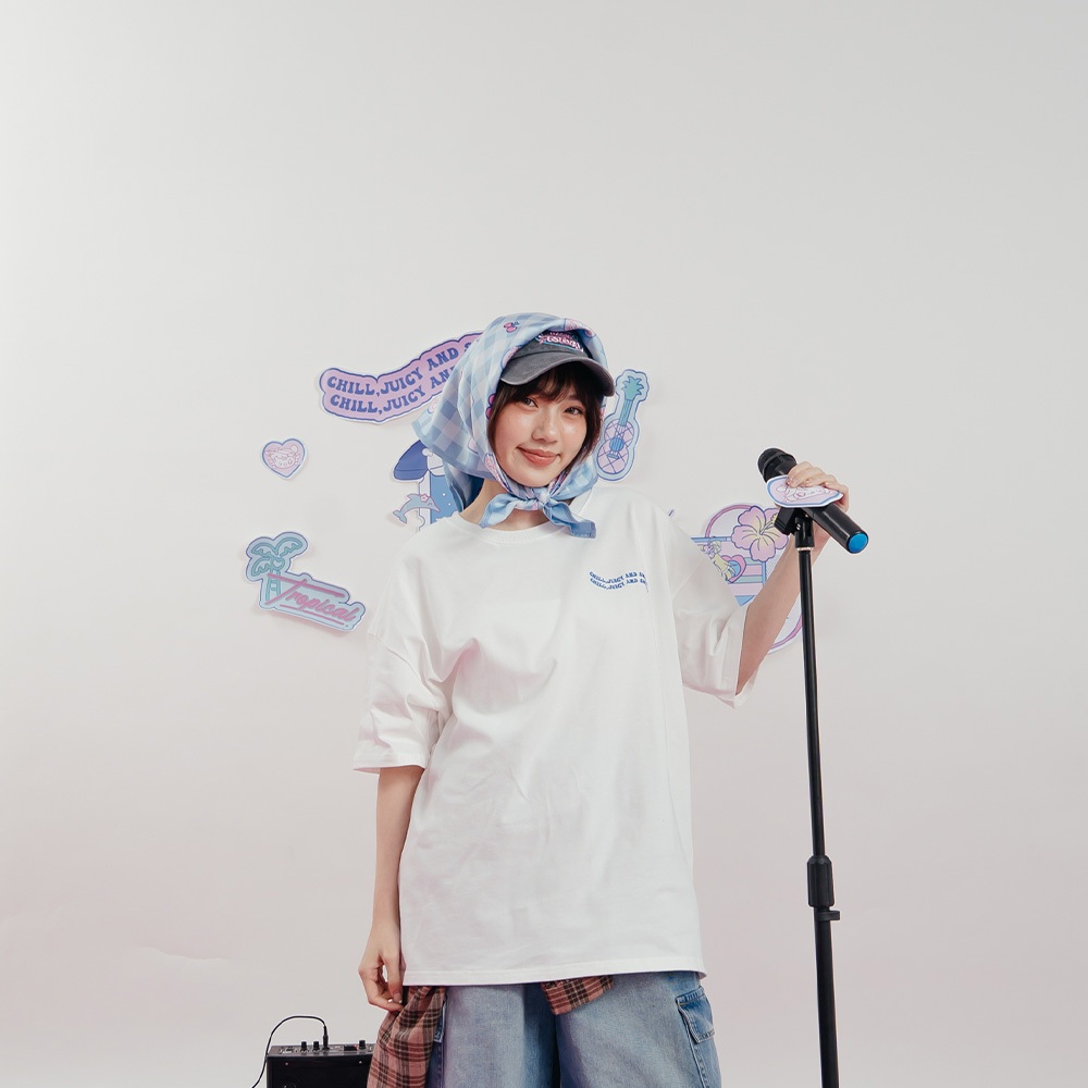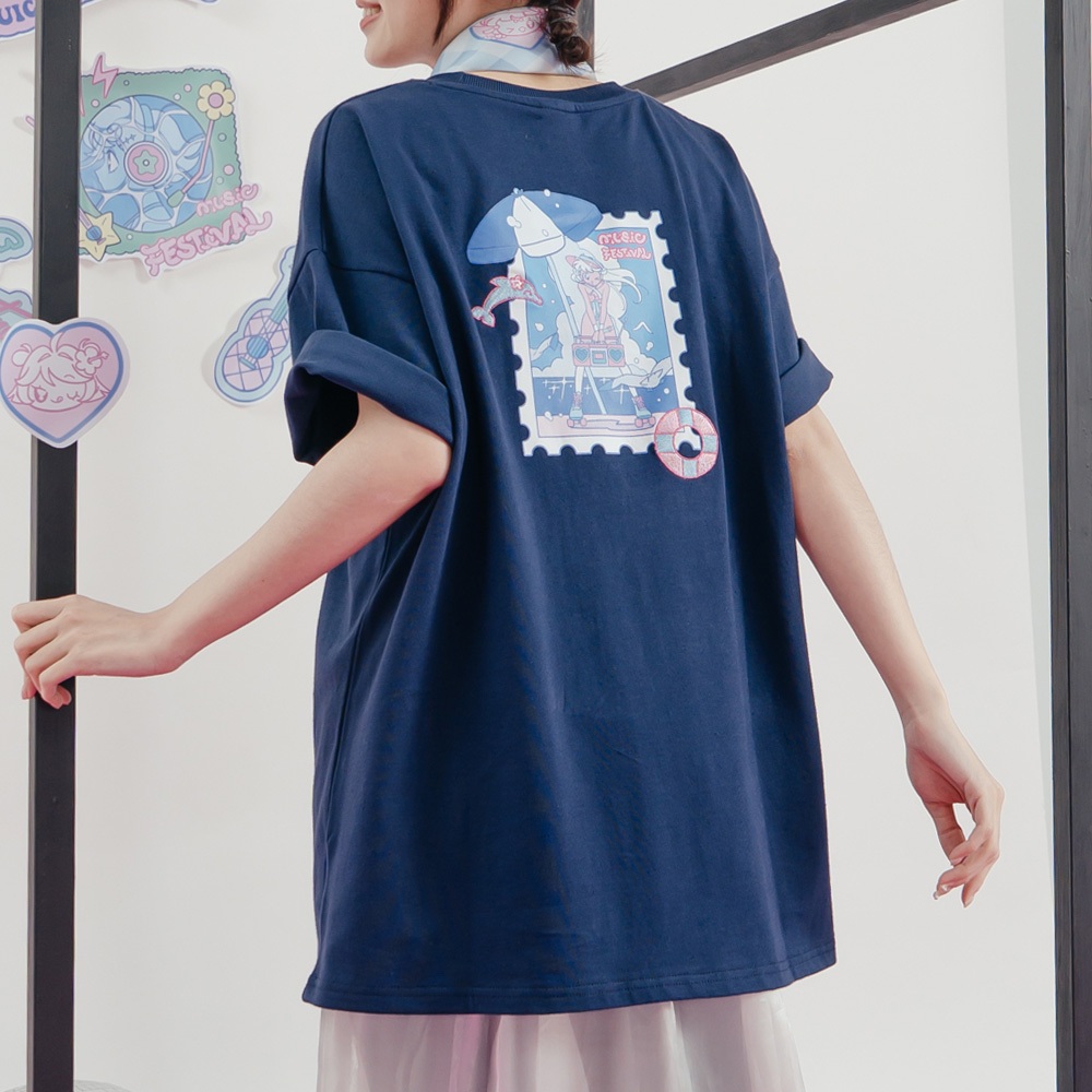 QUEENSHOP_ S 女裝 短袖 MIT 寬片片 夏日海灘印花寬版上衣 兩色售 現+預 【01190214】白|藍T-shirtsQUEENSHOP