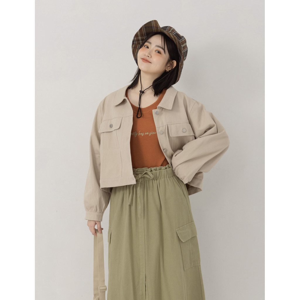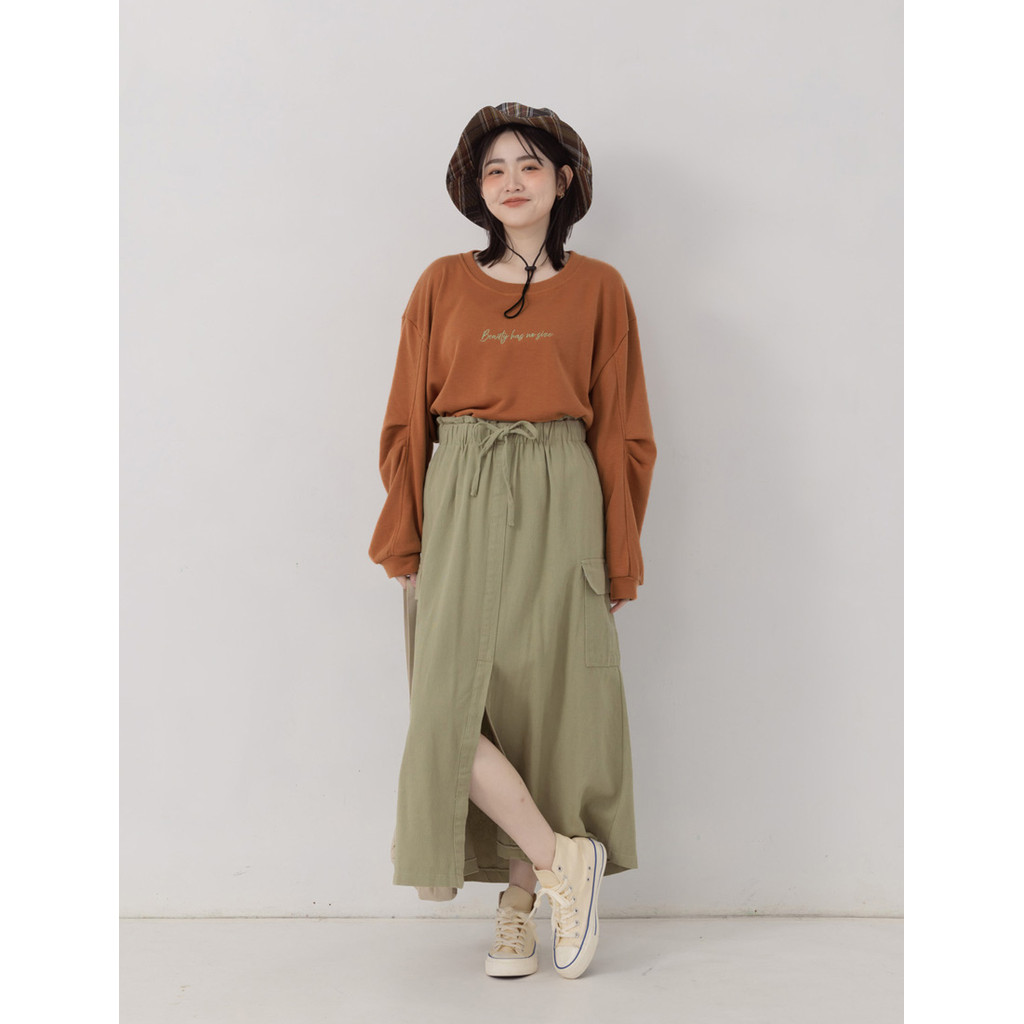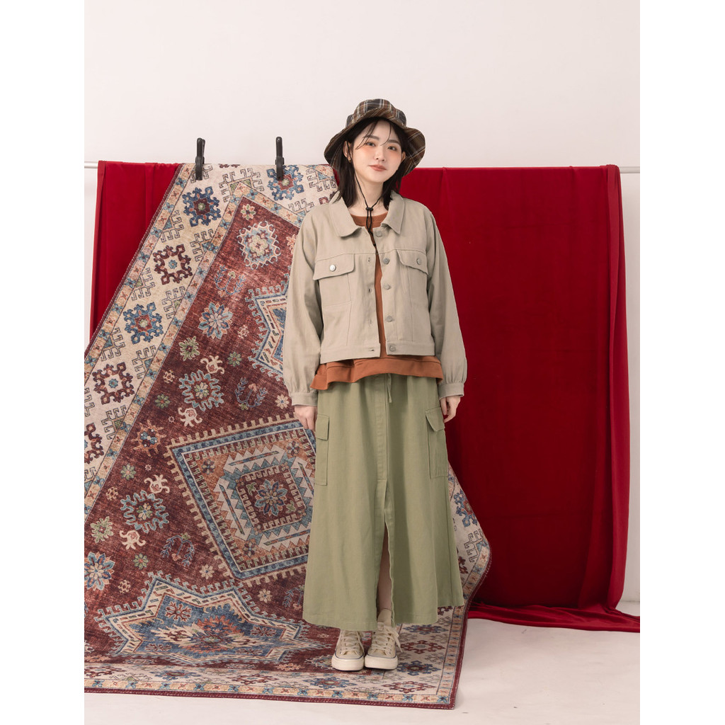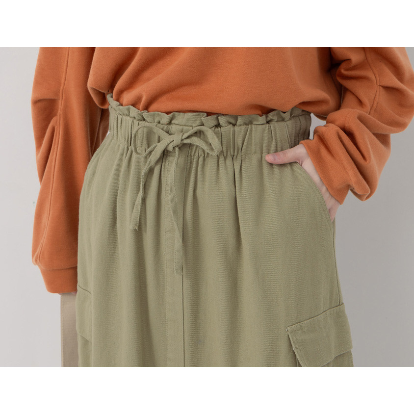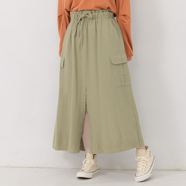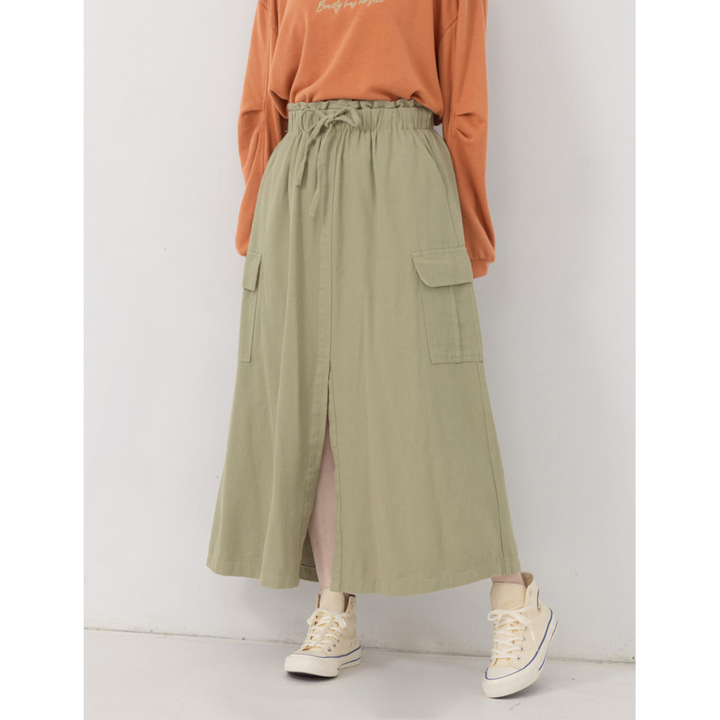【PolyLulu】 甜酷荷葉鬆緊腰頭工裝前開衩長裙 中大尺碼裙子 豆綠色L|XL|2XL|3XLPOLY LULU丨BEAUTY HAS NO SIZE 中大尺碼女裝