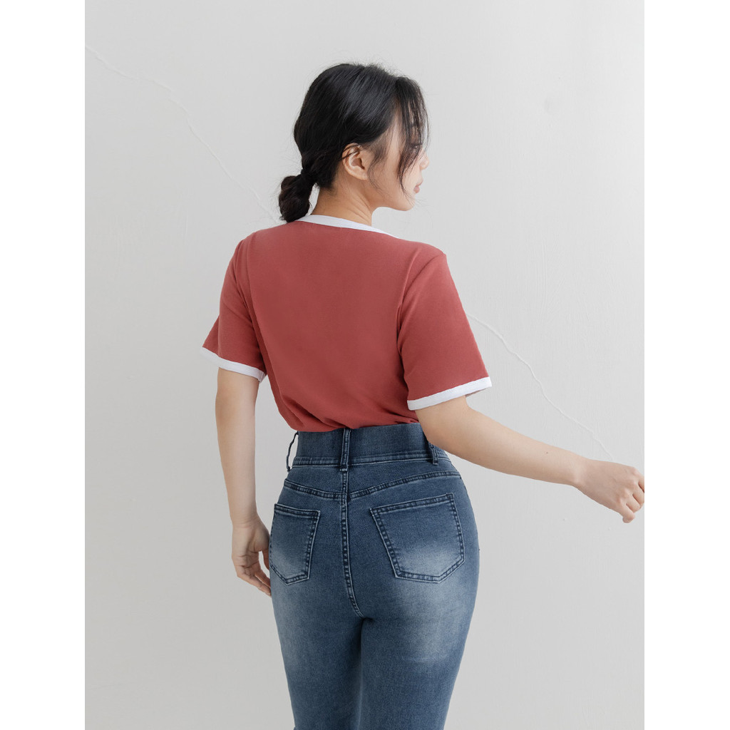 MIUSTAR 正韓 V領布標落肩寬版棉質上衣(共5色)0322 預購【NL0808RE】黑F|白F|粉F|奶綠F|卡其FT-shirtsMIUSTAR