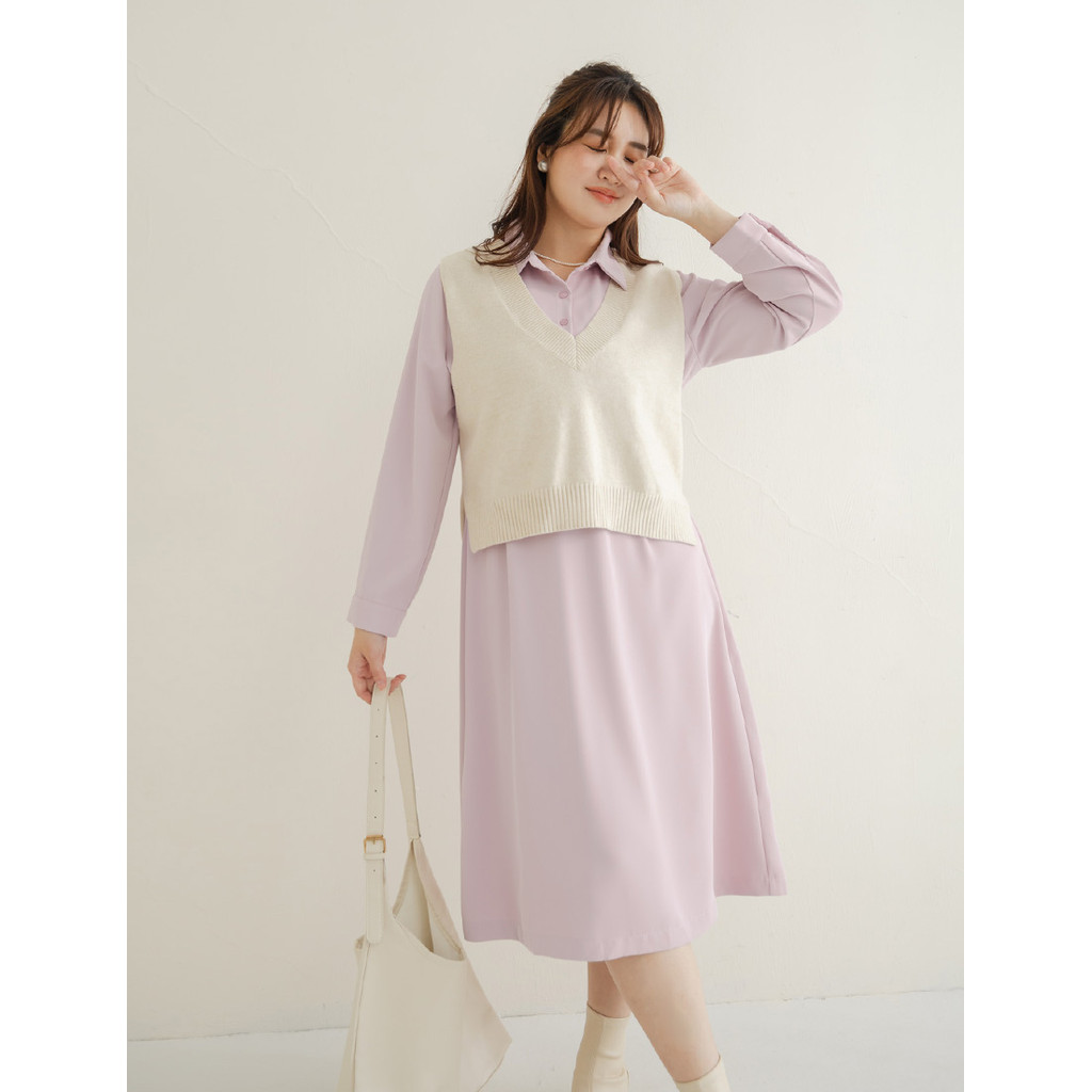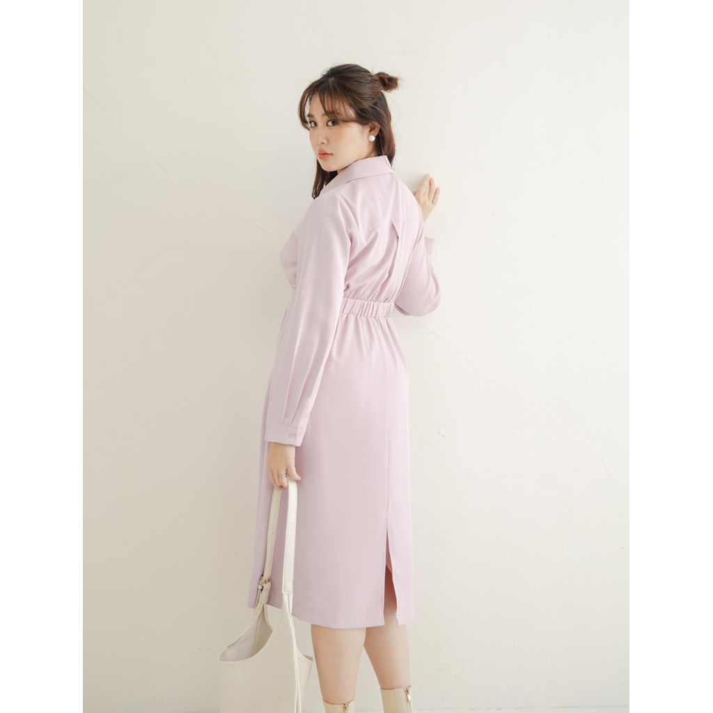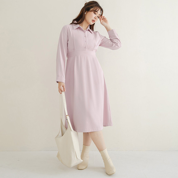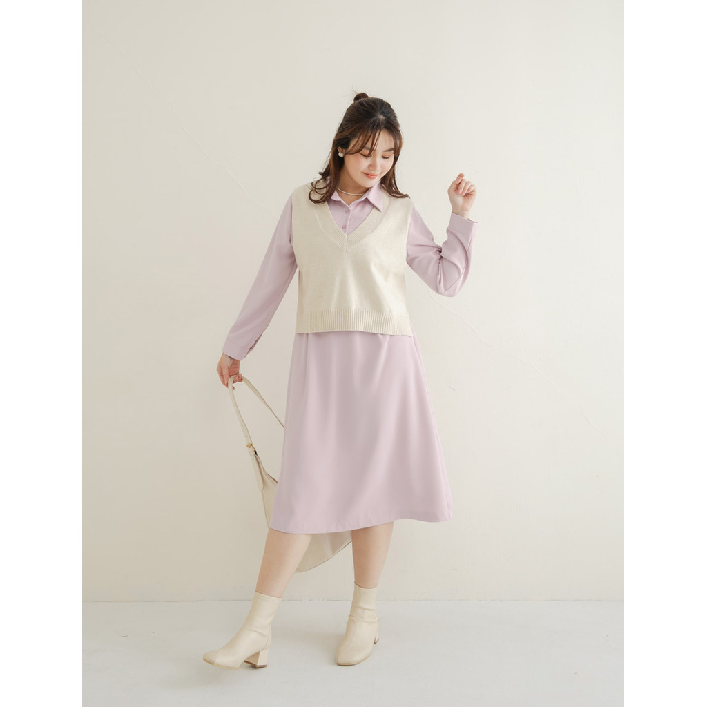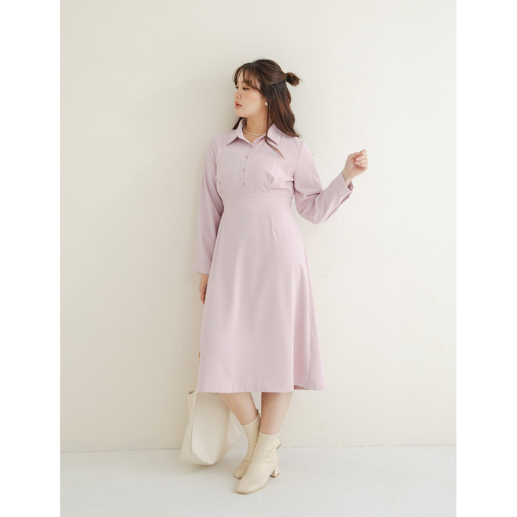 【PolyLulu】 MISS.藍莓打褶後鬆緊斜紋開衩長袖洋裝 中大尺碼洋裝 紫色L|XL|2XL|3XLPOLY LULU丨BEAUTY HAS NO SIZE 中大尺碼女裝