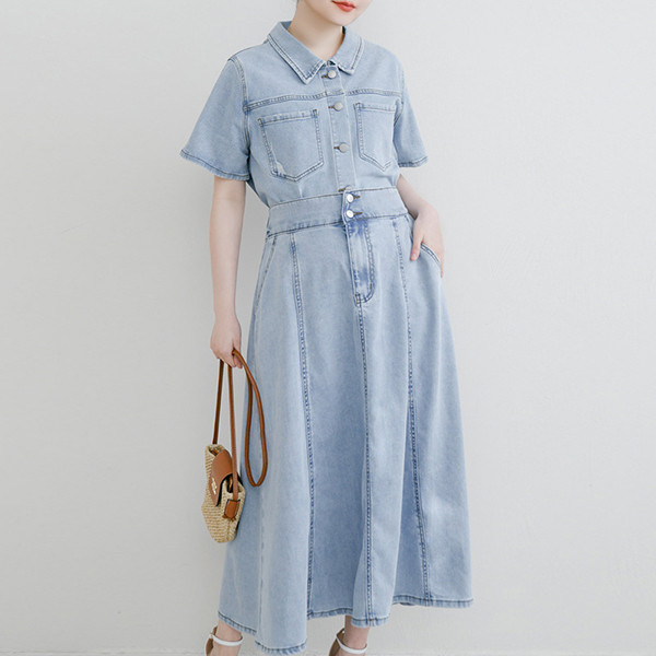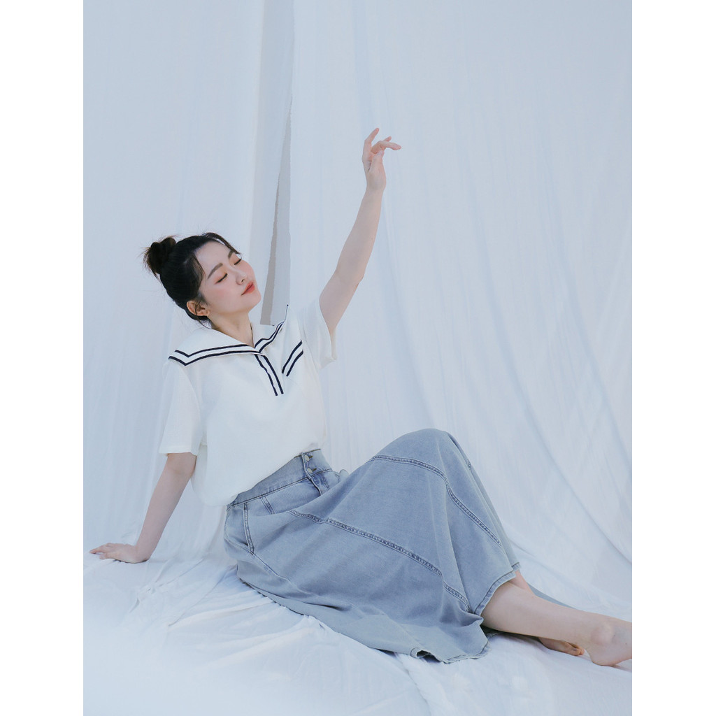 【PolyLulu】 萊賽爾牛仔後鬆緊傘襬長裙 中大尺碼裙子 淺藍色2XL|3XL|4XL|L|XLPOLY LULU丨BEAUTY HAS NO SIZE 中大尺碼女裝