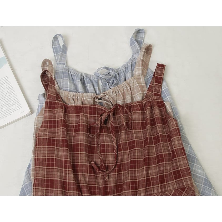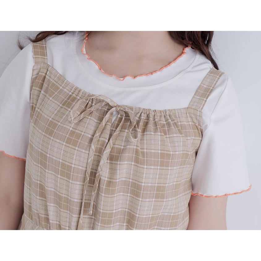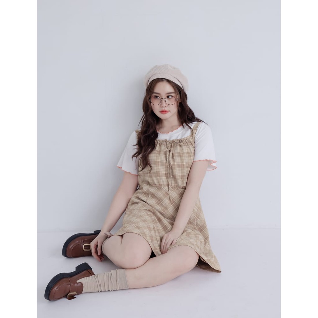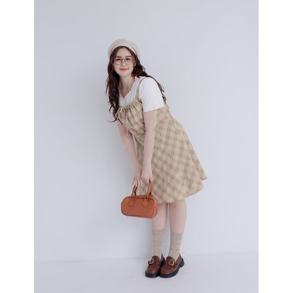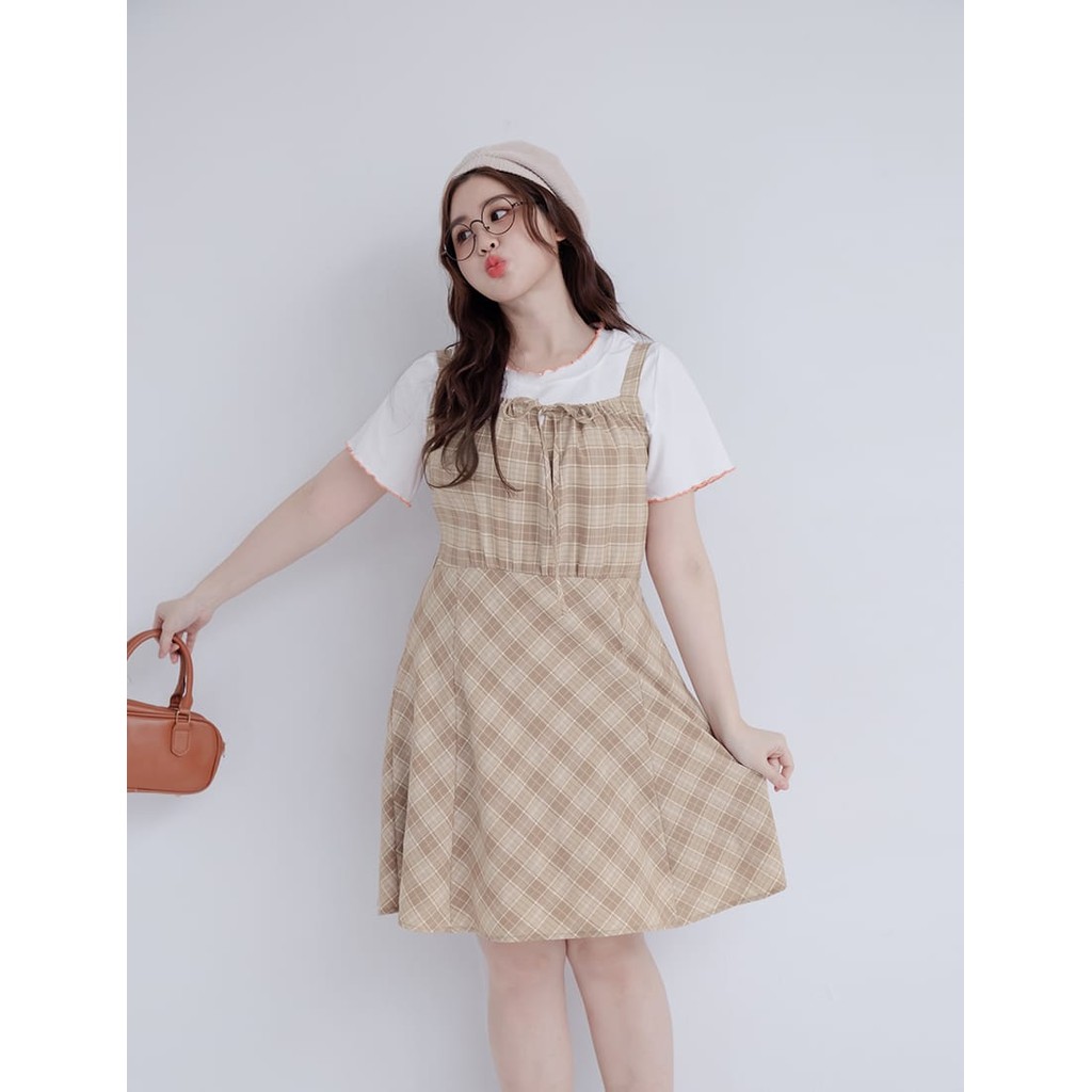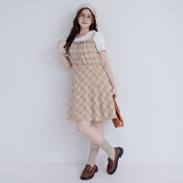 【PolyLulu】 學院風可調式格紋短洋裝 中大尺碼洋裝 拿鐵色XL|2XL|3XL|LPOLY LULU丨BEAUTY HAS NO SIZE 中大尺碼女裝