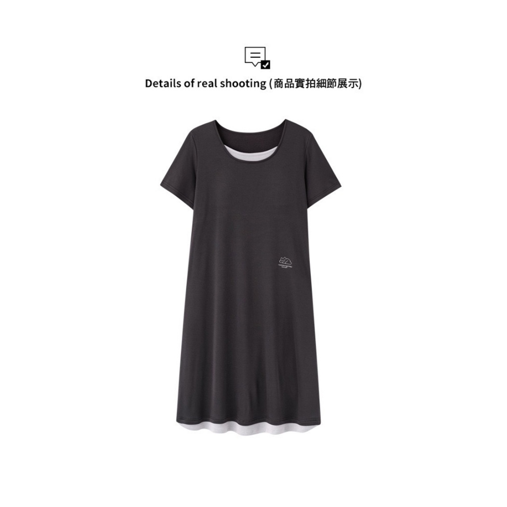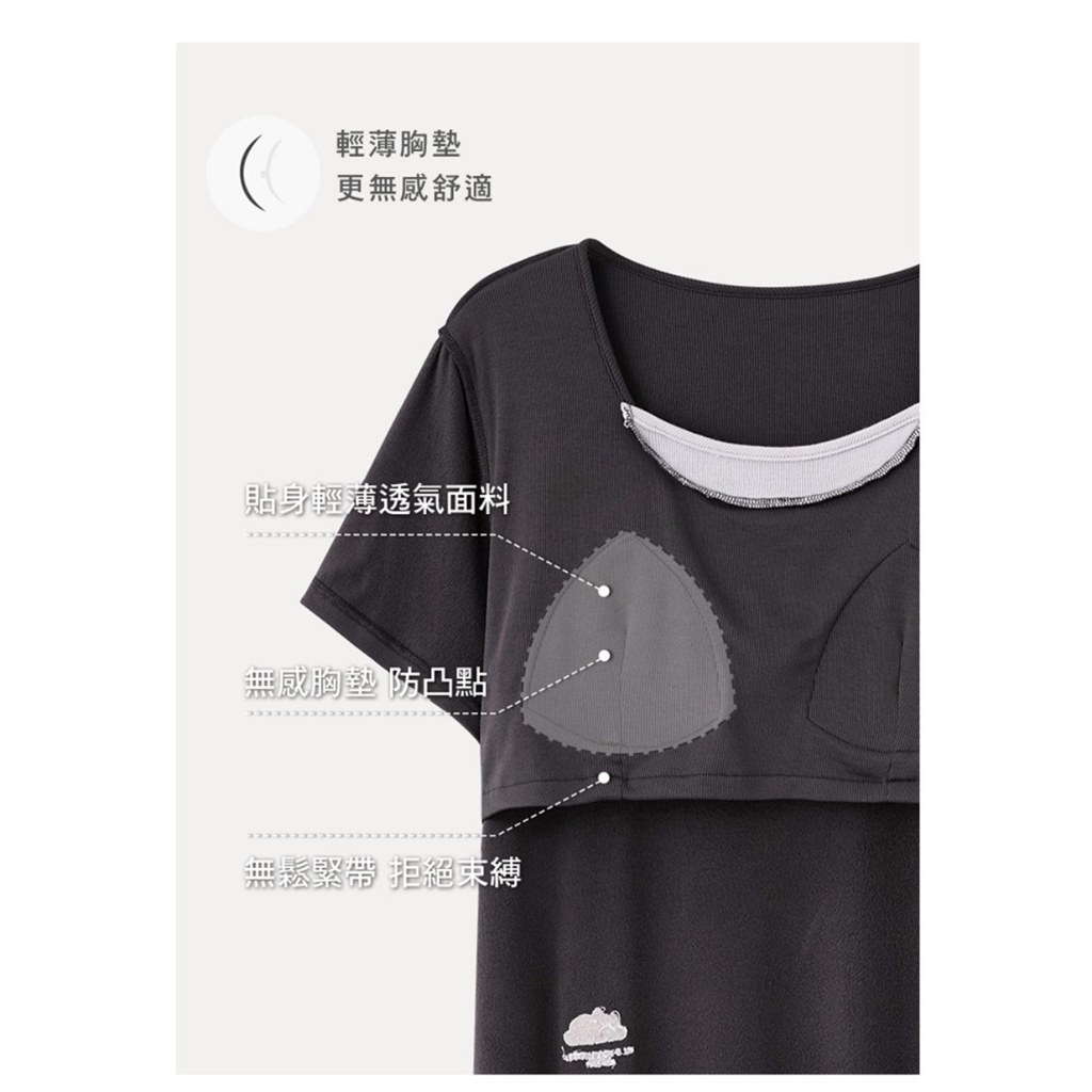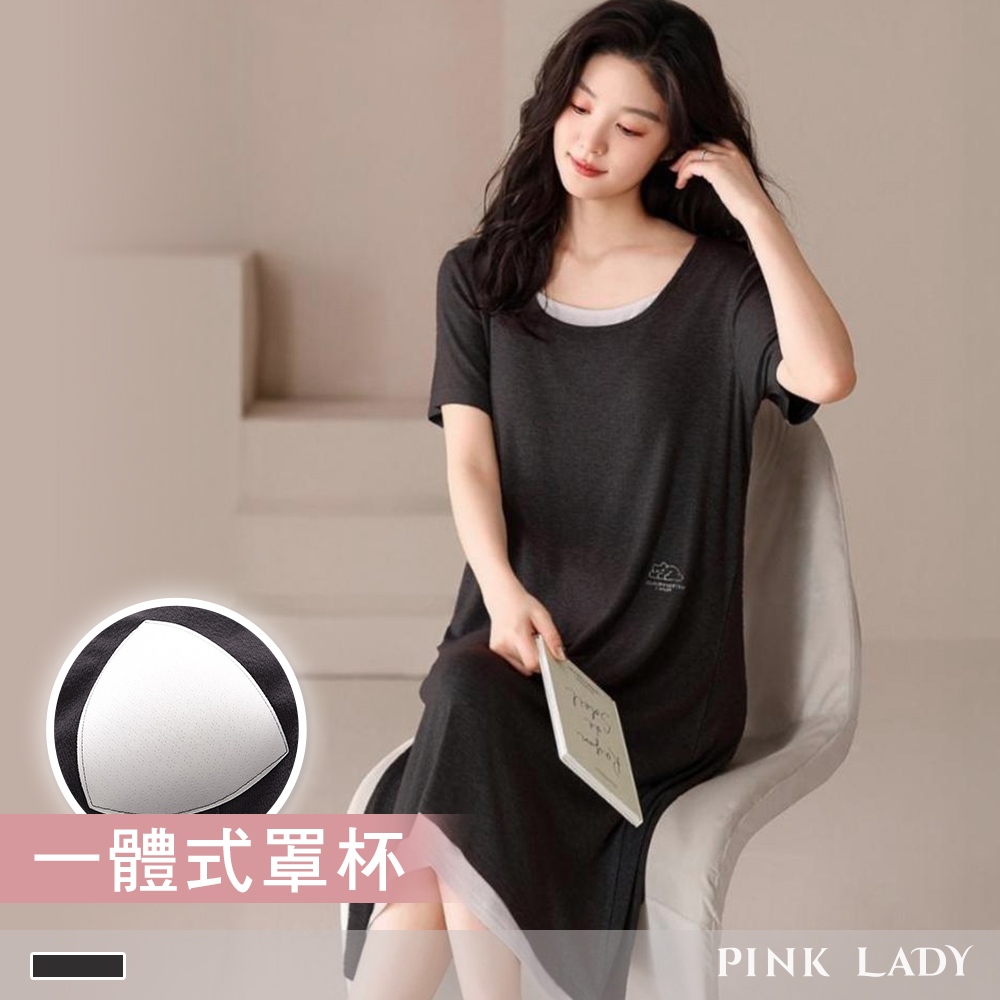 Pink Lady 罩杯式 慵懶貓語 涼感螺紋布 短袖睡裙 連身睡裙 春夏 圓領 柔感 女睡衣 居家服 13082深灰,M-L|深灰,XLNight DressesPINK LADY內睡衣.Since 1995
