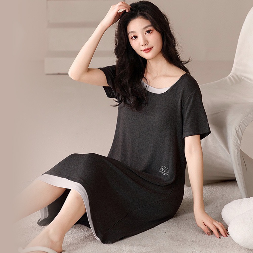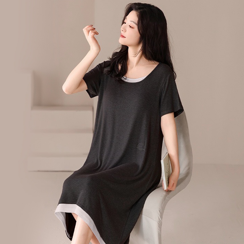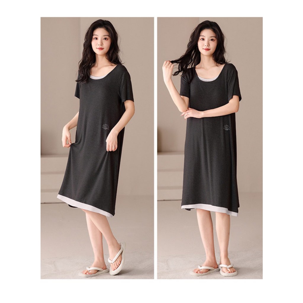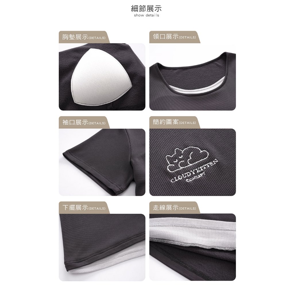 Pink Lady 罩杯式 慵懶貓語 涼感螺紋布 短袖睡裙 連身睡裙 春夏 圓領 柔感 女睡衣 居家服 13082深灰,M-L|深灰,XLNight DressesPINK LADY內睡衣.Since 1995