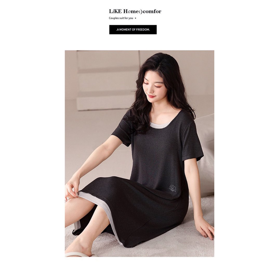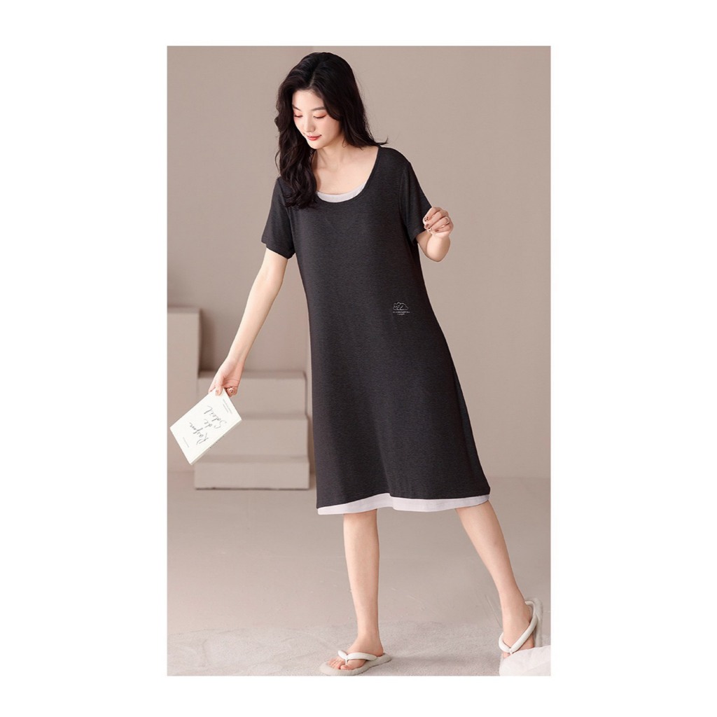 Pink Lady 莫代爾 罩杯式 條紋 圓領 無鋼圈 短袖睡裙 透氣 包覆 超柔軟 外穿居家服 2014黑白,M|黑白,L|黑白,XL|綠白,M|綠白,L|綠白,XLNight DressesPINK LADY內睡衣.Since 1995