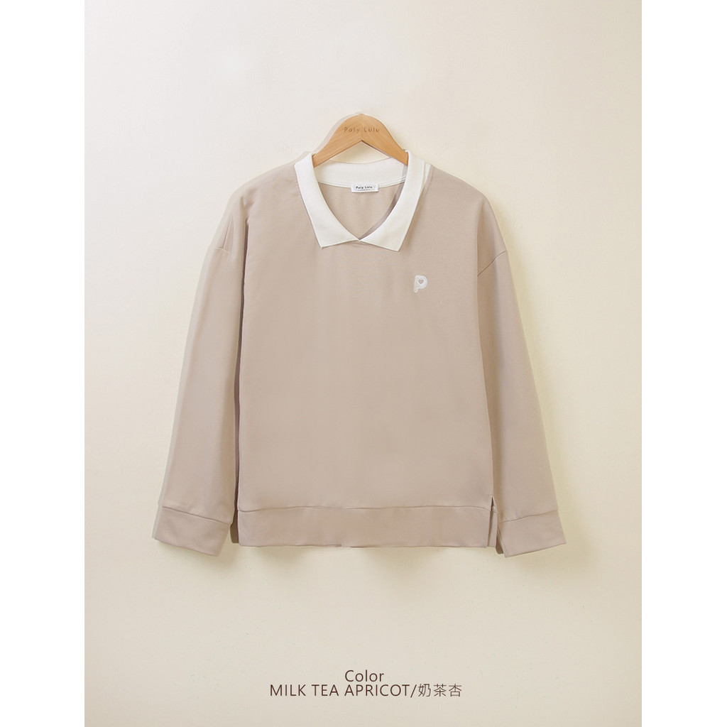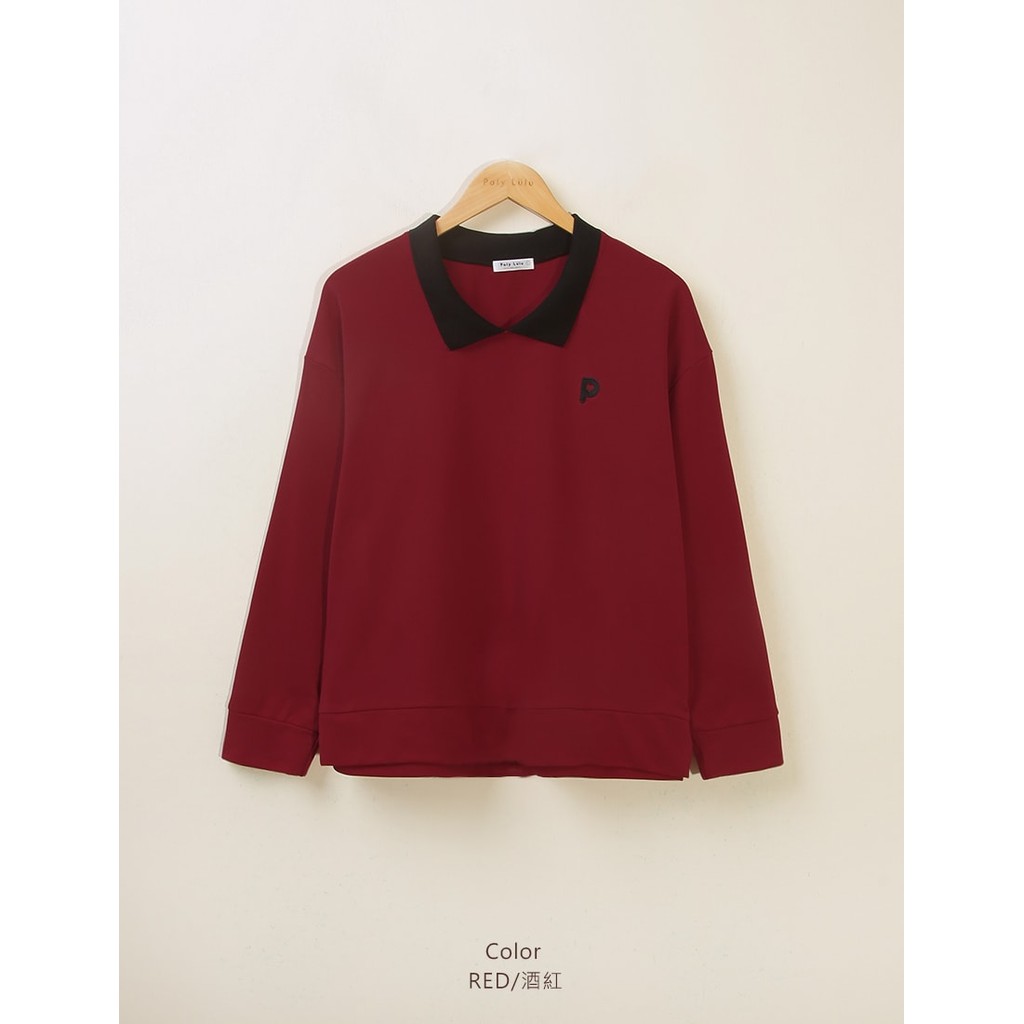 【PolyLulu】 俏皮品牌LOGO刺繡撞色翻領長袖上衣 中大尺碼上衣灰藍色,XL|灰藍色,3XL|酒紅色,XL|酒紅色,3XL|奶茶杏色,XL|奶茶杏色,2XL|奶茶杏色,3XL|灰藍色,L|灰藍色,2XL|酒紅色,L|酒紅色,2XL|奶茶杏色,LOthersPOLY LULU丨BEAUTY HAS NO SIZE 中大尺碼女裝