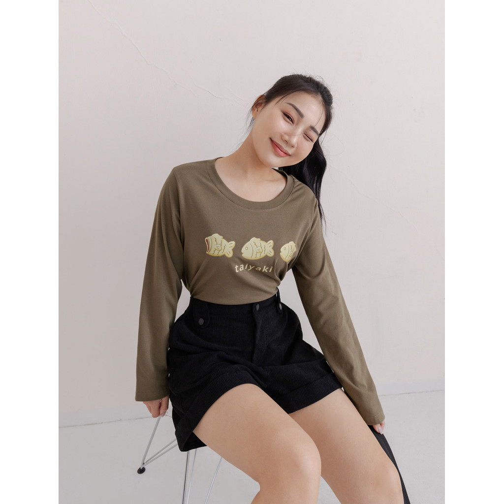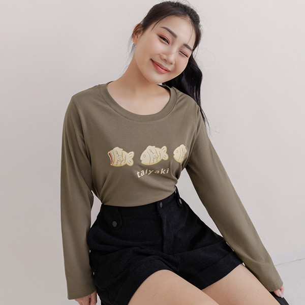 【PolyLulu】 熱呼呼咬一口鯛魚燒圓領長袖上衣 中大尺碼上衣 淺棕色2XL|3XL|L|XLOthersPOLY LULU丨BEAUTY HAS NO SIZE 中大尺碼女裝