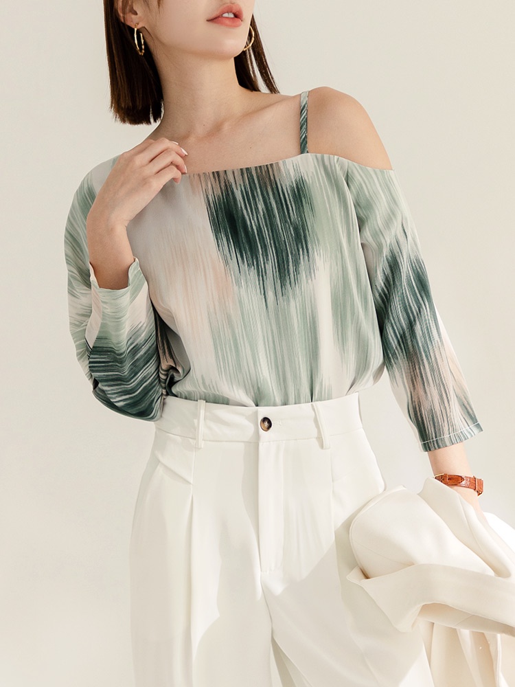 OB嚴選 不易皺印花斜肩七分袖上衣 《AB18909》大尺碼/現貨/女裝綠,XL|綠,2L|綠,3L|駝,M|駝,L|駝,3L|綠,S|綠,L|駝,S|駝,XL|駝,2L|綠,MT-shirtsOB嚴選官方旗艦店
