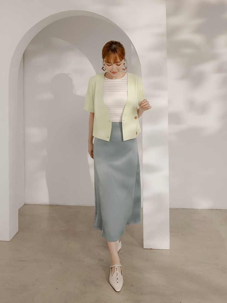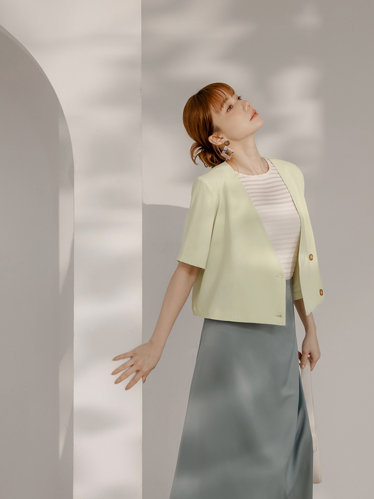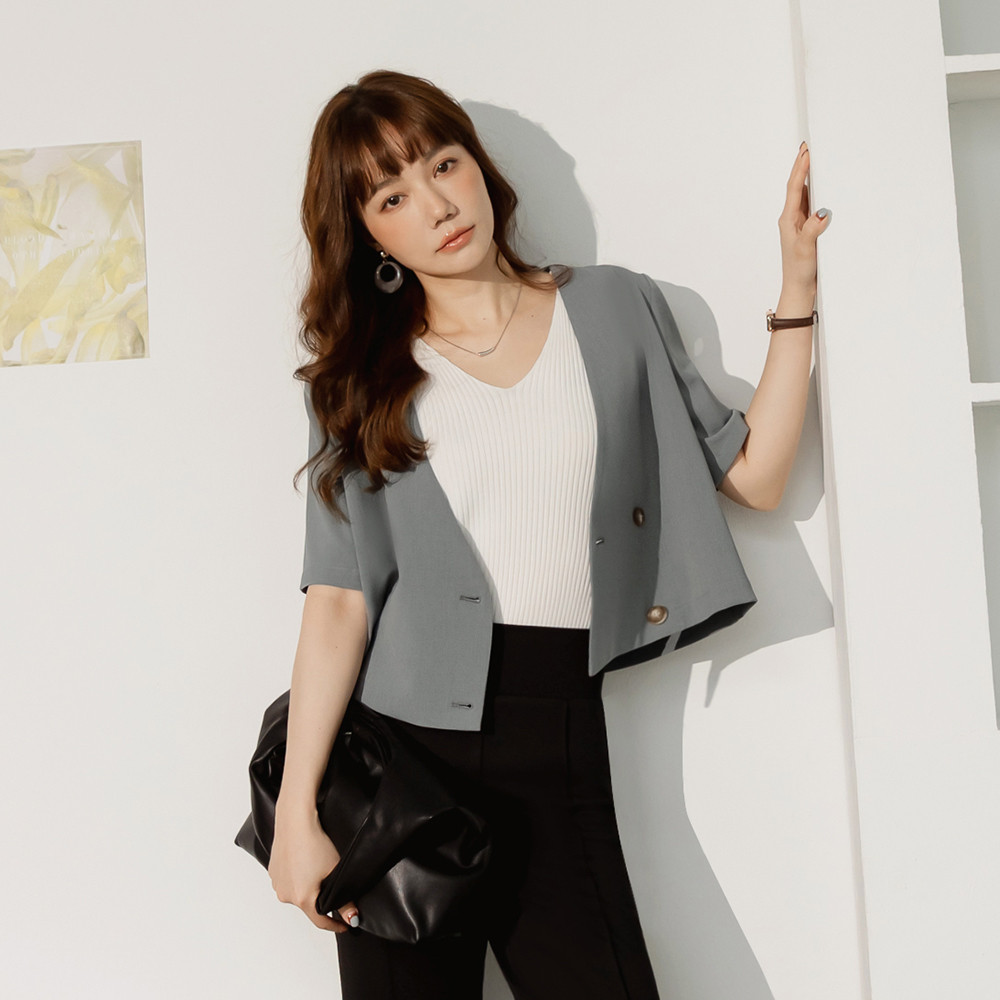 OB嚴選 後開衩微短版無領西裝外套 《EA3751》灰,S|灰,M|灰,L|灰,XL|灰,2L|灰,3L|果綠,S|果綠,M|果綠,L|果綠,XL|果綠,2L|果綠,3LWinter Jackets & CoatsOB嚴選官方旗艦店