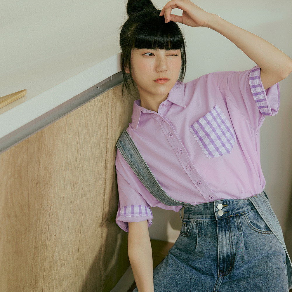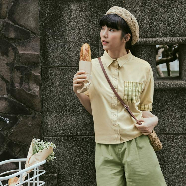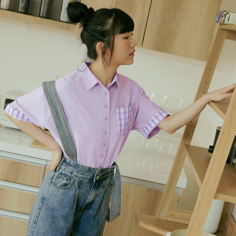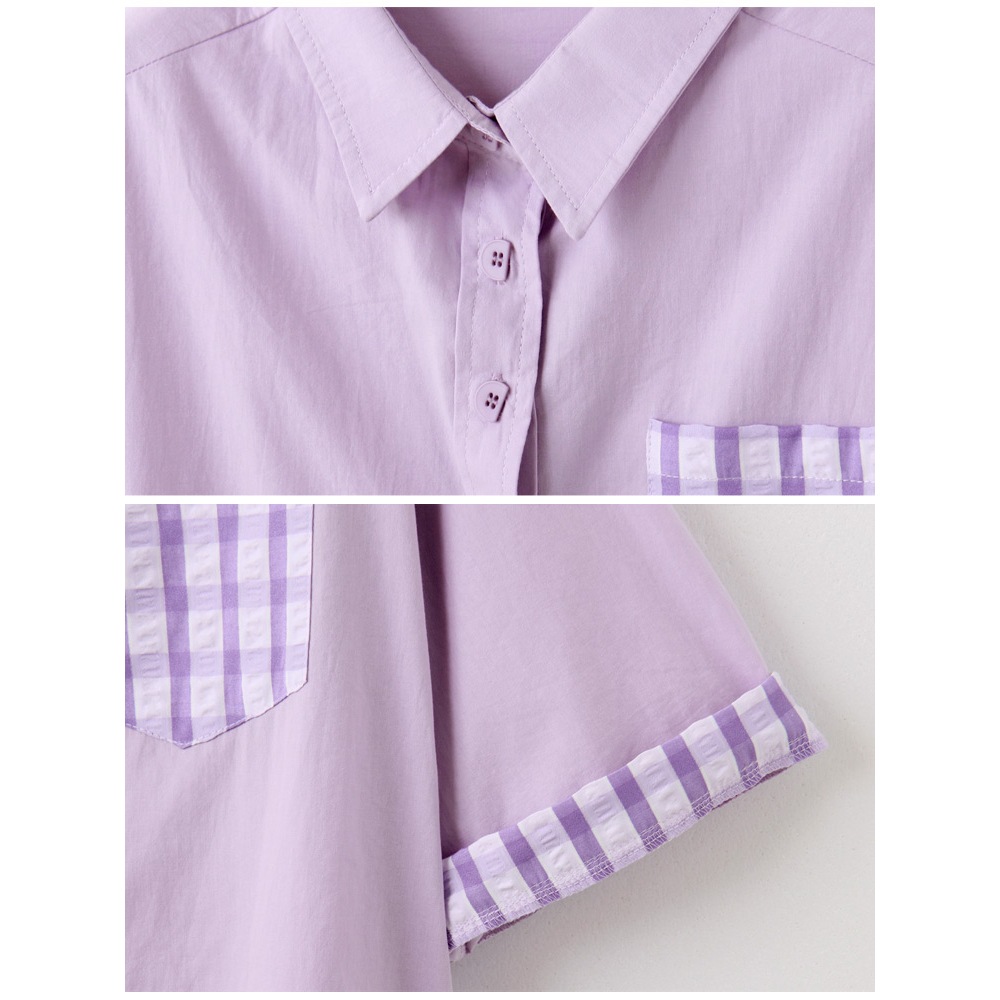 OB嚴選 純棉翻領拼接格紋造型鈕扣開襟上衣 《AB19354》日系/大尺碼/現貨/女裝芥末綠,S|芥末綠,M|芥末綠,L|芥末綠,XL|芥末綠,2L|芥末綠,3L|灰紫,S|灰紫,M|灰紫,L|灰紫,XL|灰紫,2L|灰紫,3LShirts & BlousesOB嚴選官方旗艦店