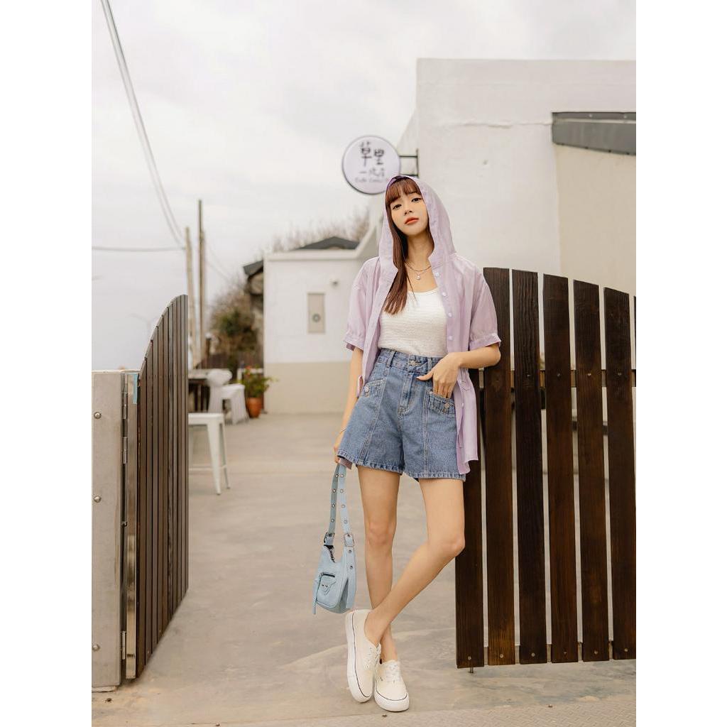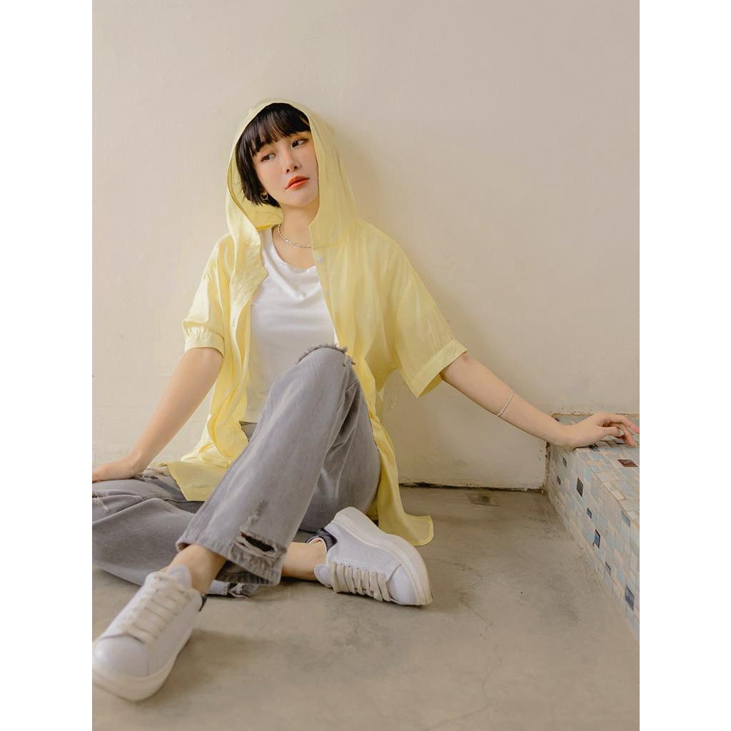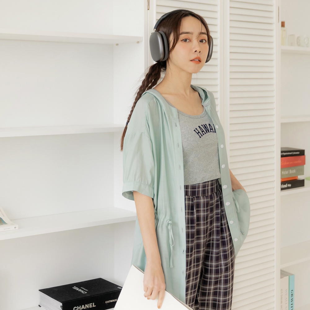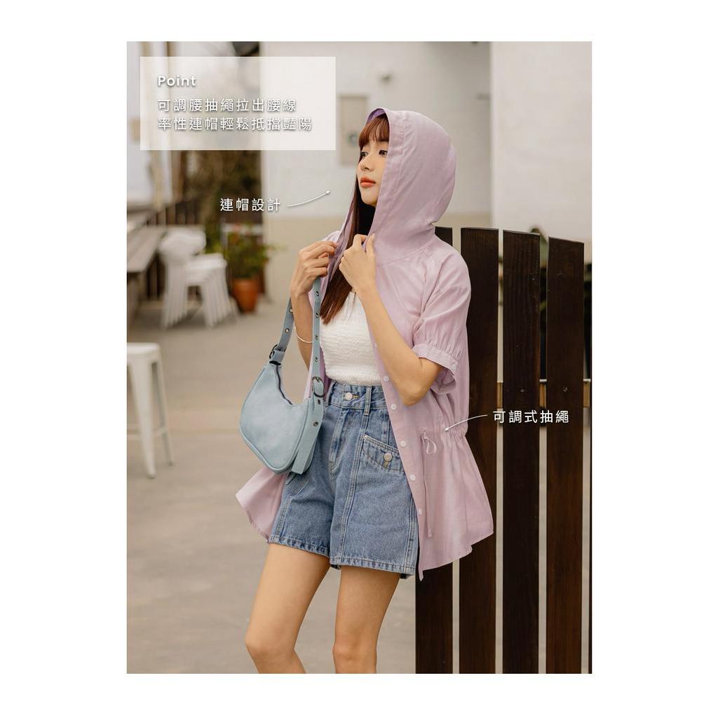 OB嚴選 素色開襟腰抽繩連帽短袖罩衫 《EA3491》大尺碼/女裝/現貨