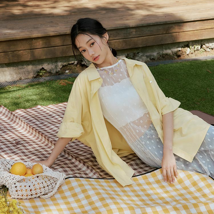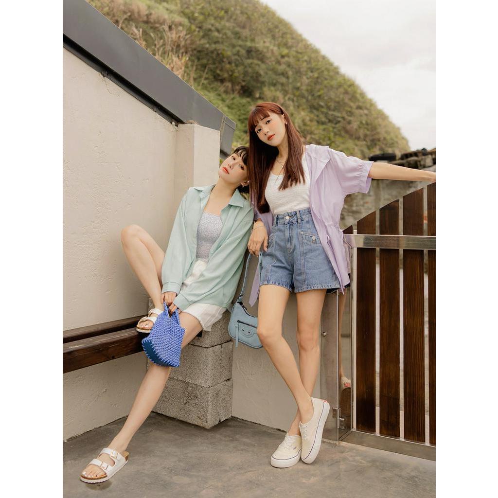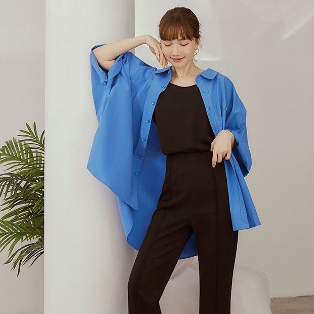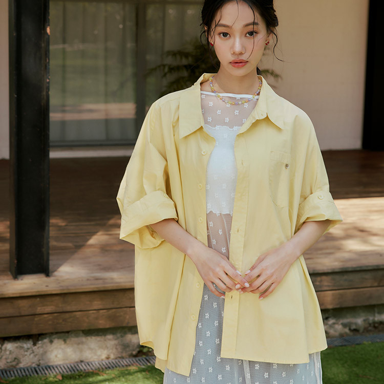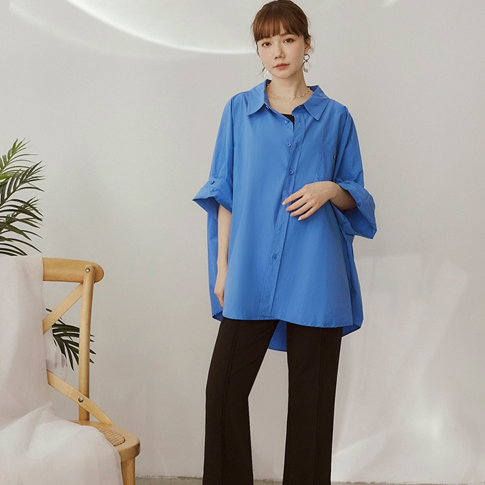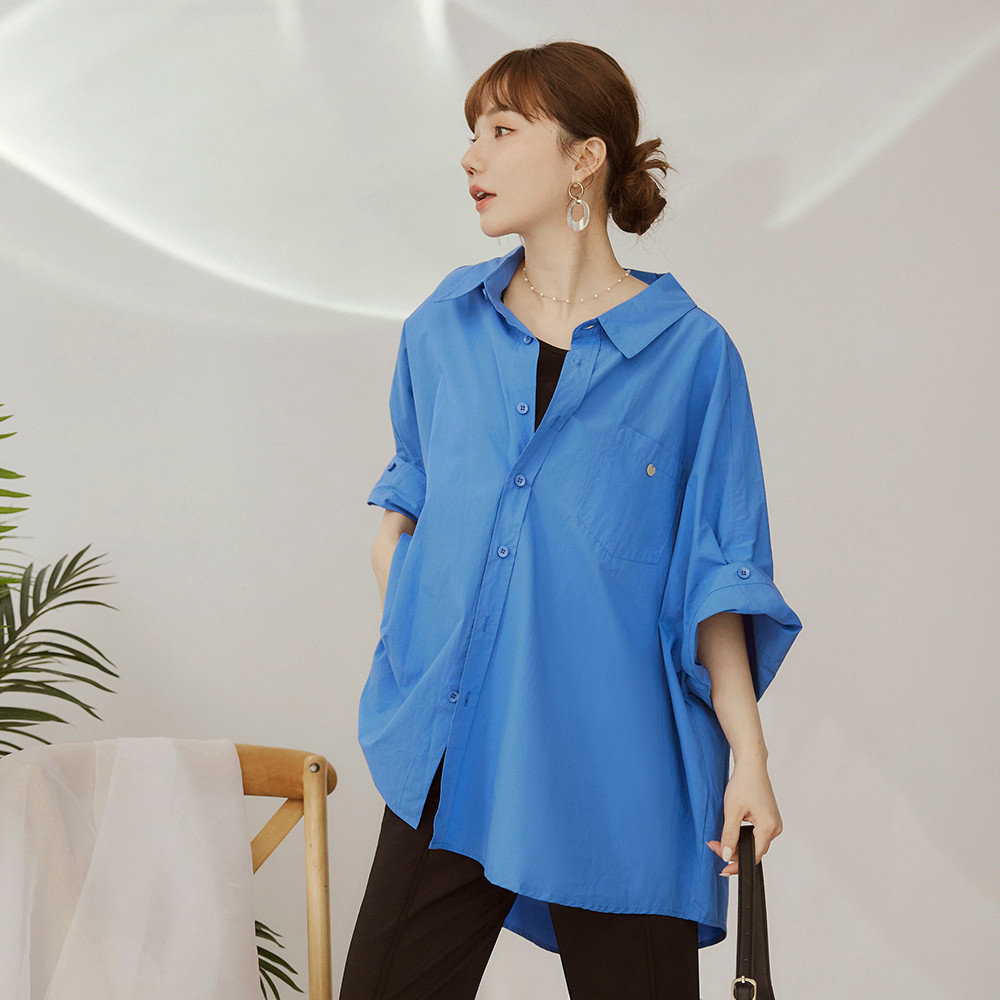 OB嚴選 純棉寬鬆鈕釦摺袖襯衫外套 《AB20049》大尺碼/女裝/現貨白,F|鮮藍,F|檸檬黃,FShirts & BlousesOB嚴選官方旗艦店