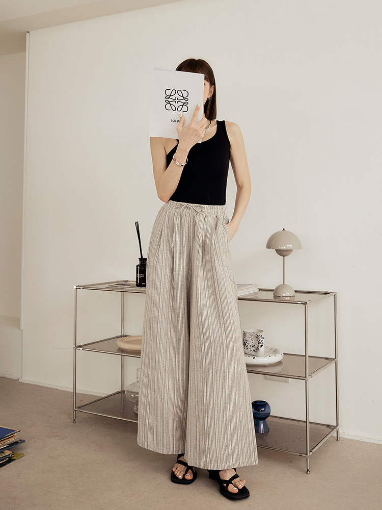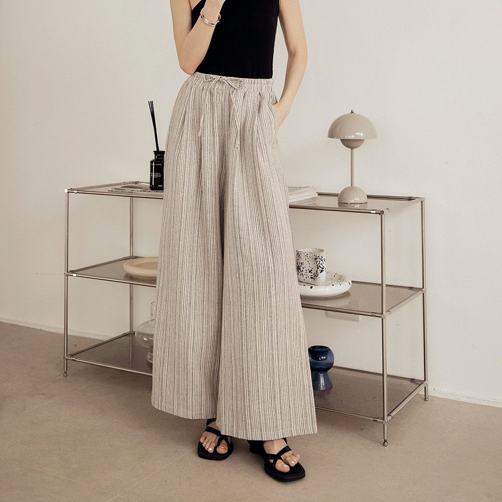 OB嚴選 親膚棉麻配色織紋腰綁帶寬褲 《BA7487》大尺碼/女裝/現貨奶油米,M|奶油米,L|奶油米,XL|奶油米,2L|奶油米,3LPantsOB嚴選官方旗艦店