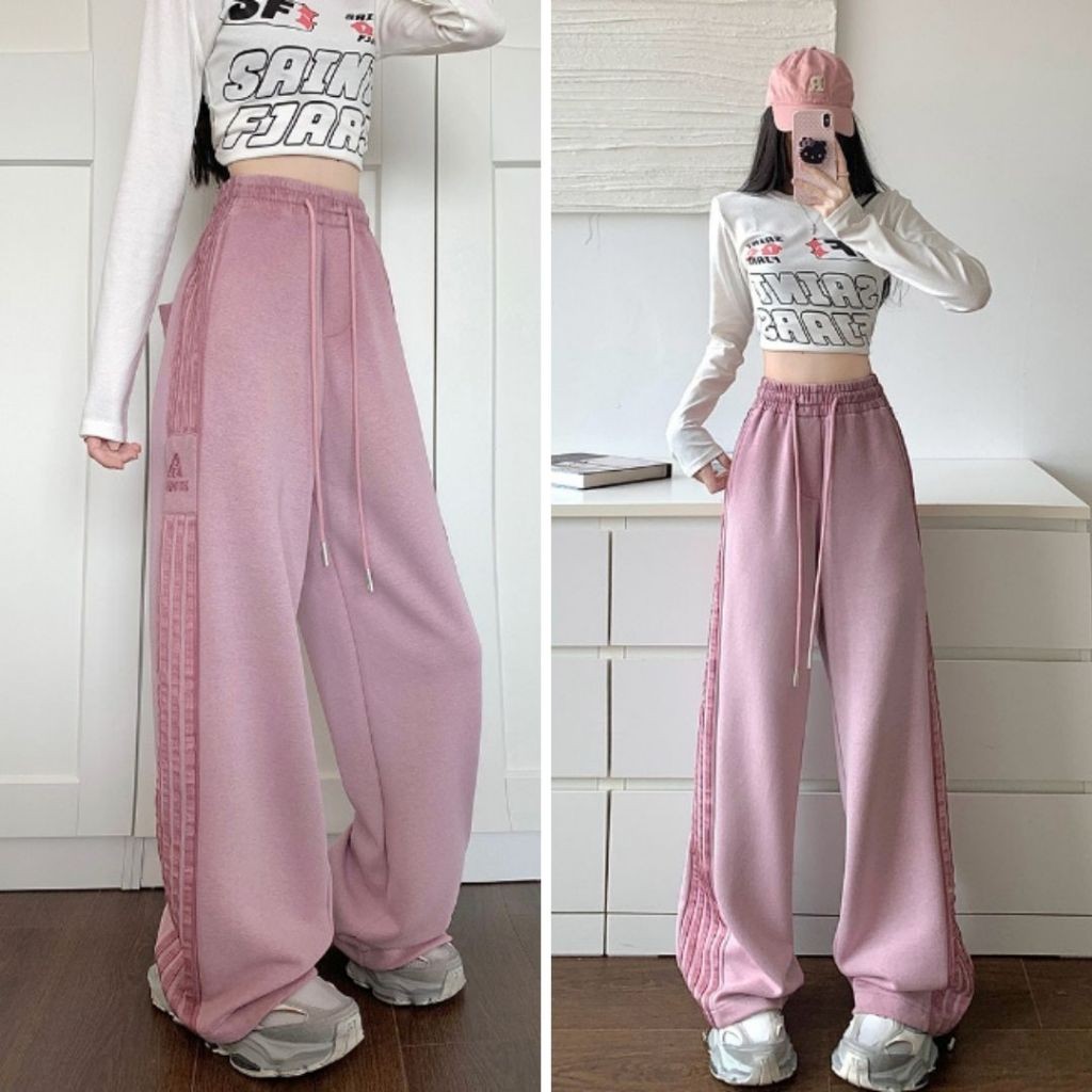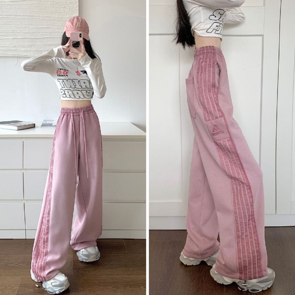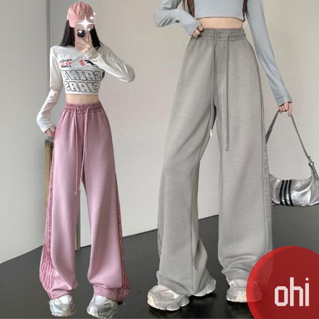 【ohi】高街條紋運動褲 美式衛褲 寬鬆休閒褲子 百搭休閒褲 長褲女 休閒長褲 GPS393粉色,4XL|灰色,S|灰色,M|灰色,L|灰色,XL|灰色,2XL|灰色,3XL|灰色,4XL|粉色,S|粉色,M|粉色,L|粉色,XL|粉色,2XL|粉色,3XLPantsOHI衣著