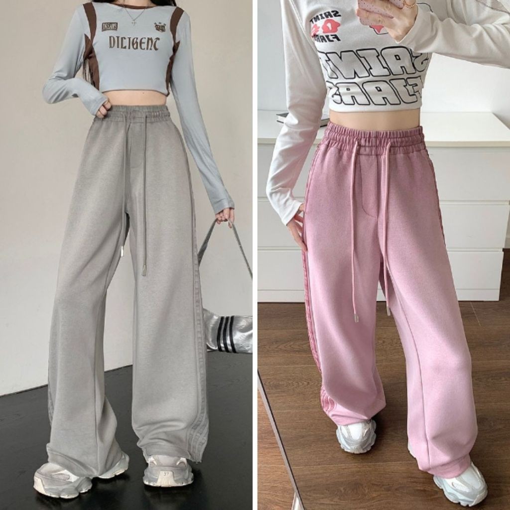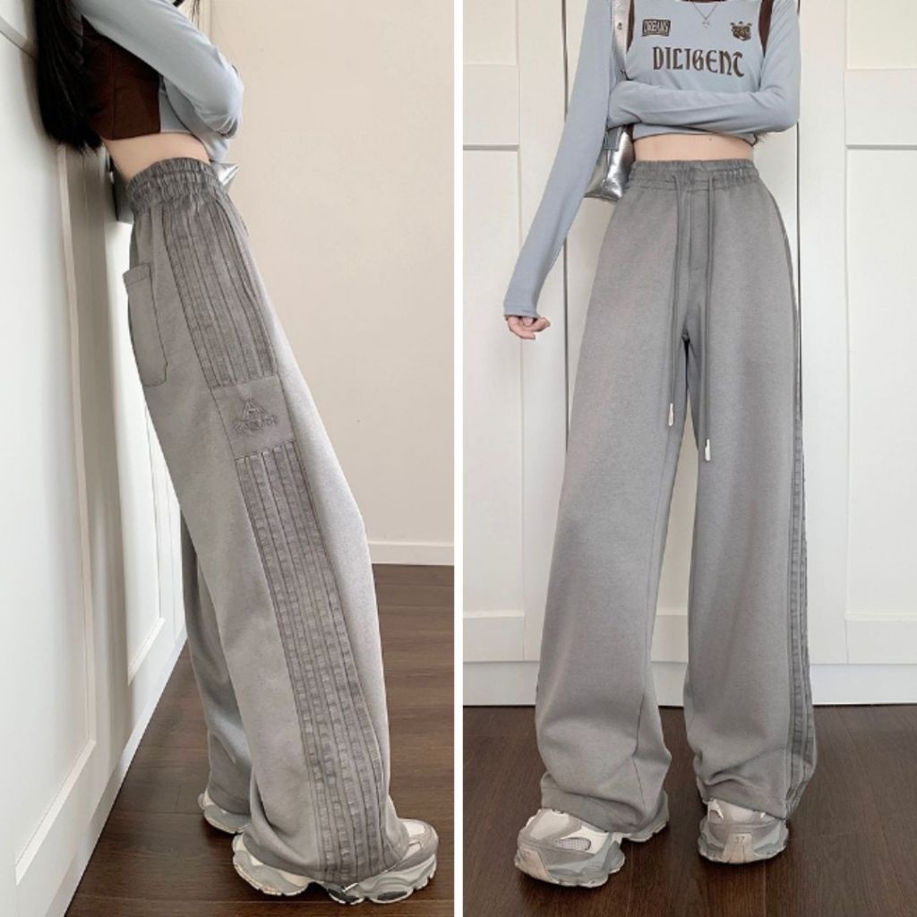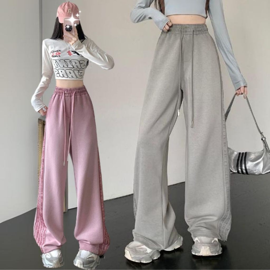 【ohi】高街條紋運動褲 美式衛褲 寬鬆休閒褲子 百搭休閒褲 長褲女 休閒長褲 GPS393粉色,4XL|灰色,S|灰色,M|灰色,L|灰色,XL|灰色,2XL|灰色,3XL|灰色,4XL|粉色,S|粉色,M|粉色,L|粉色,XL|粉色,2XL|粉色,3XLPantsOHI衣著