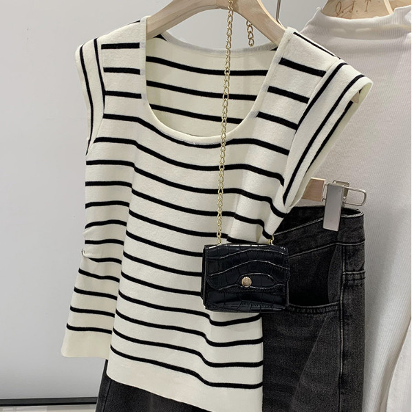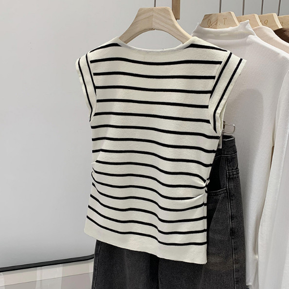 【ohi】休閒針織背心 針織無袖背心 U領上衣 短版上衣 女裝 無袖背心女 無袖上衣 女裝 夏天衣服 GWD5586條紋|粉色|杏色|黑色OthersOHI衣著