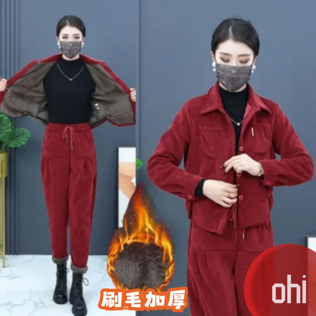 【ohi】上衣+長褲兩件套 刷毛加厚歐棉絨套裝 套裝女 休閒時尚 顯瘦減齡 休閒運動套裝 長袖兩件式套裝 GFS585紅色,M|紅色,L|紅色,XL|紅色,2XL|紅色,3XL|紅色,4XL|黑色,M|黑色,L|黑色,XL|黑色,2XL|黑色,3XL|黑色,4XL|咖啡色,M|咖啡色,L|咖啡色,XL|咖啡色,2XL|咖啡色,3XL|咖啡色,4XL|芥末黃,M|芥末黃,L|芥末黃,XL|芥末黃,2XL|芥末黃,3XL|芥末黃,4XL|卡其色,M|卡其色,L|卡其色,XL|卡其色,2XL|卡其色,3XL|卡其色,4XLIndividual SetsOHI衣著