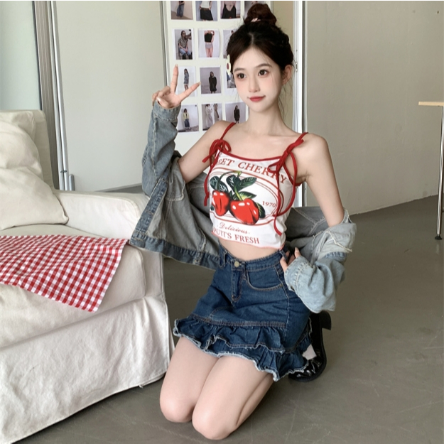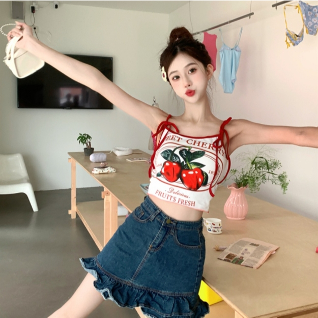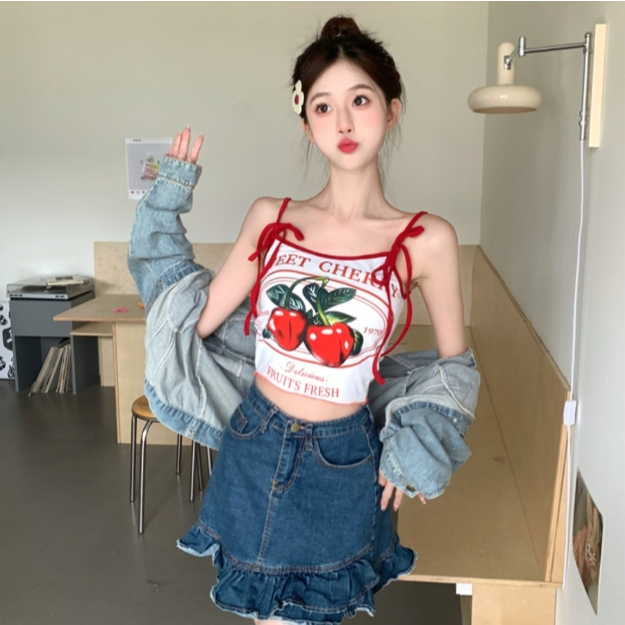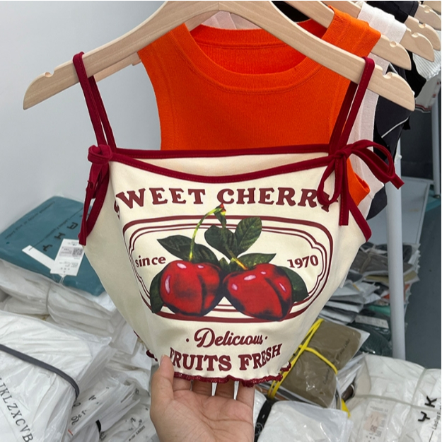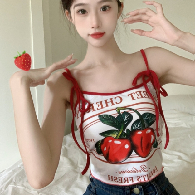 【ohi】櫻桃印花吊帶背心 小可愛 背心 無袖背心女 吊帶背心 女裝 顯瘦上衣 夏天內搭 GVX661圖片色,S|圖片色,M|圖片色,L|圖片色,XLTanks & CamisolesOHI衣著