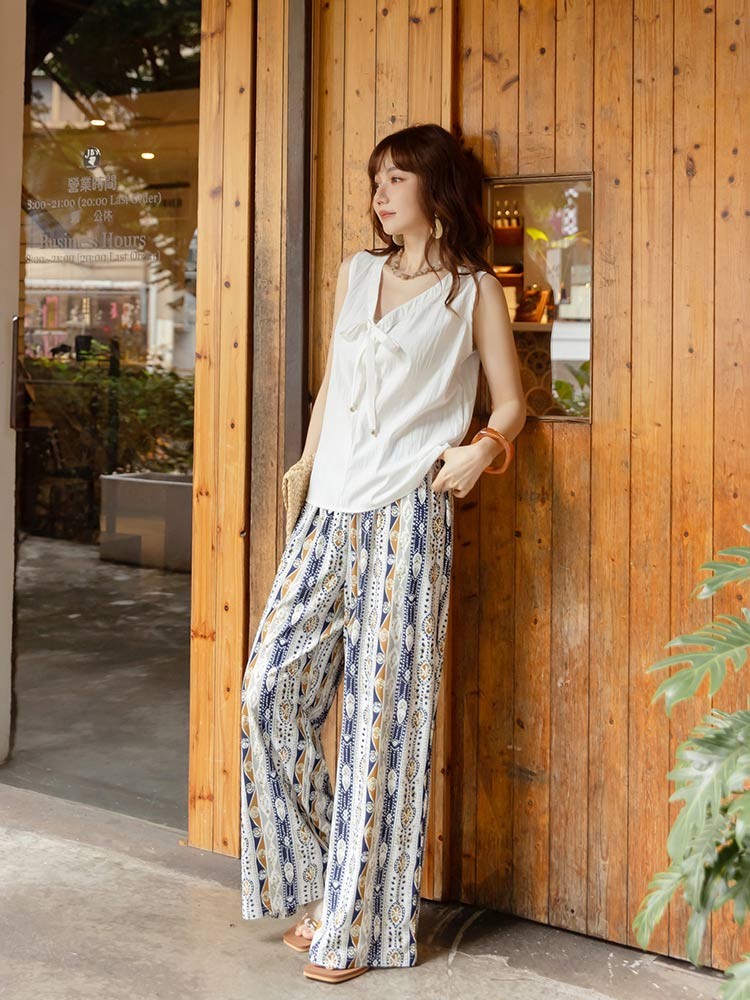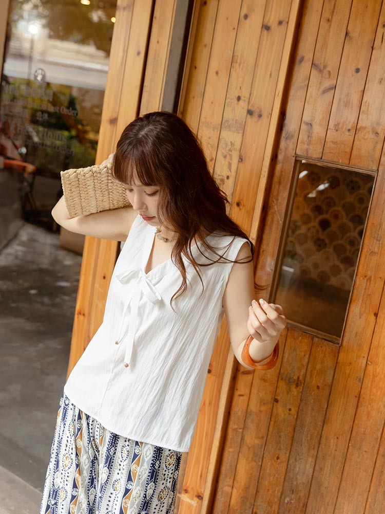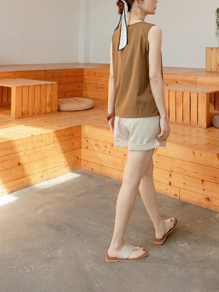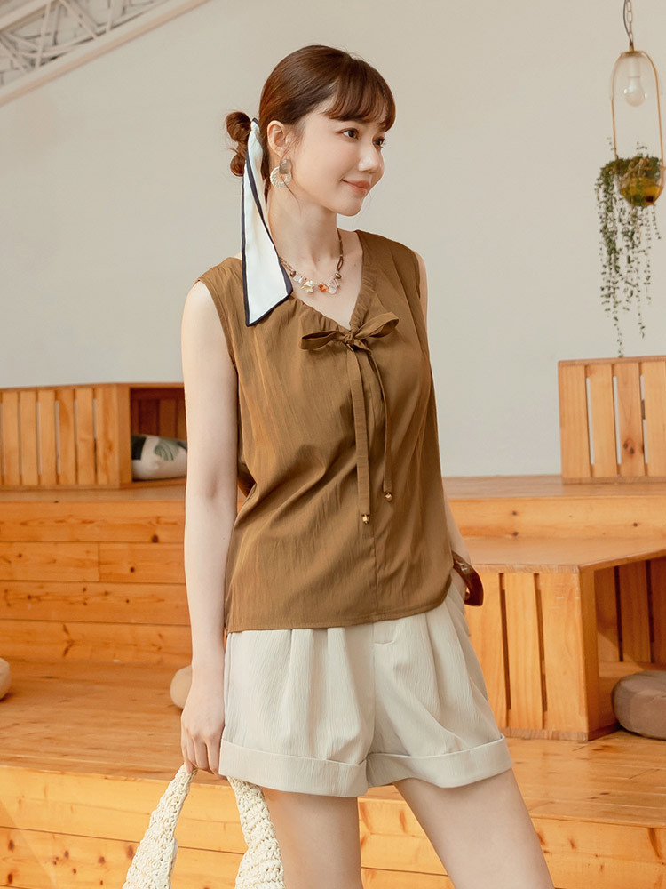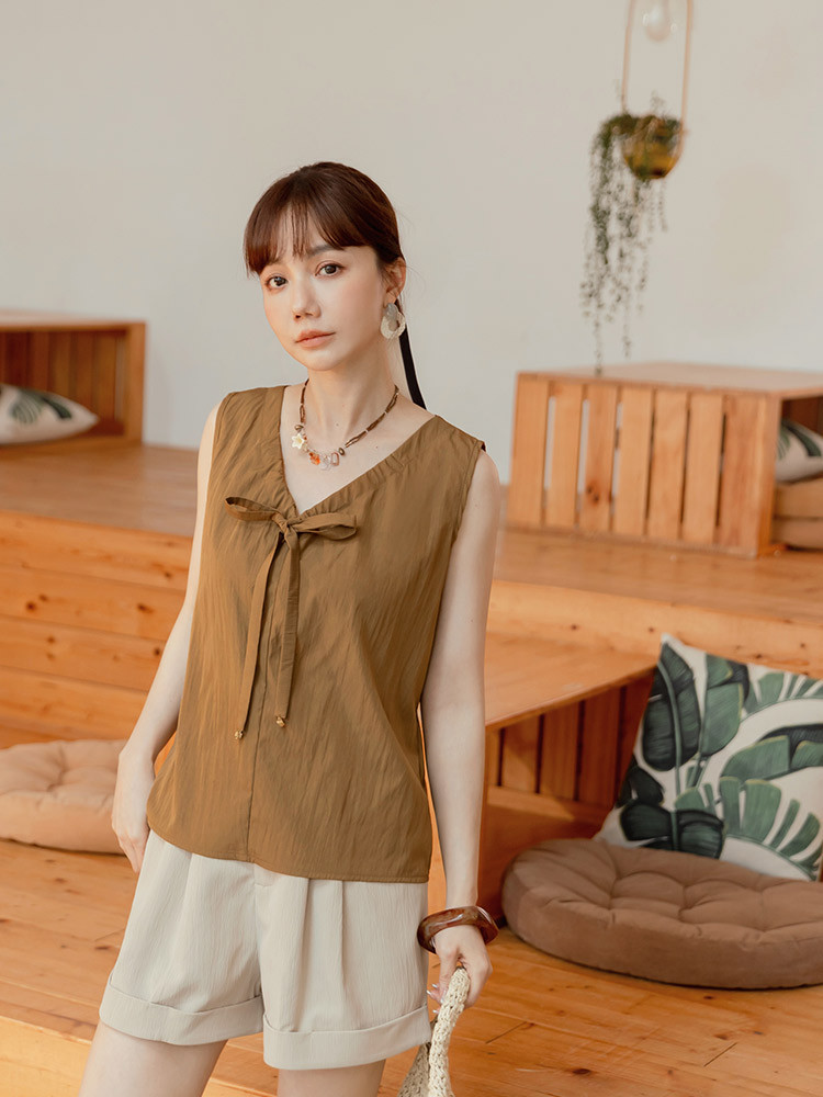 OB嚴選 輕薄微皺綁帶領無袖上衣 《AB20358》