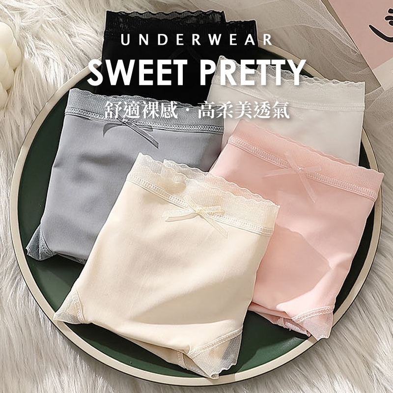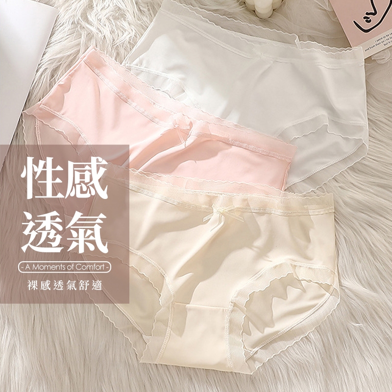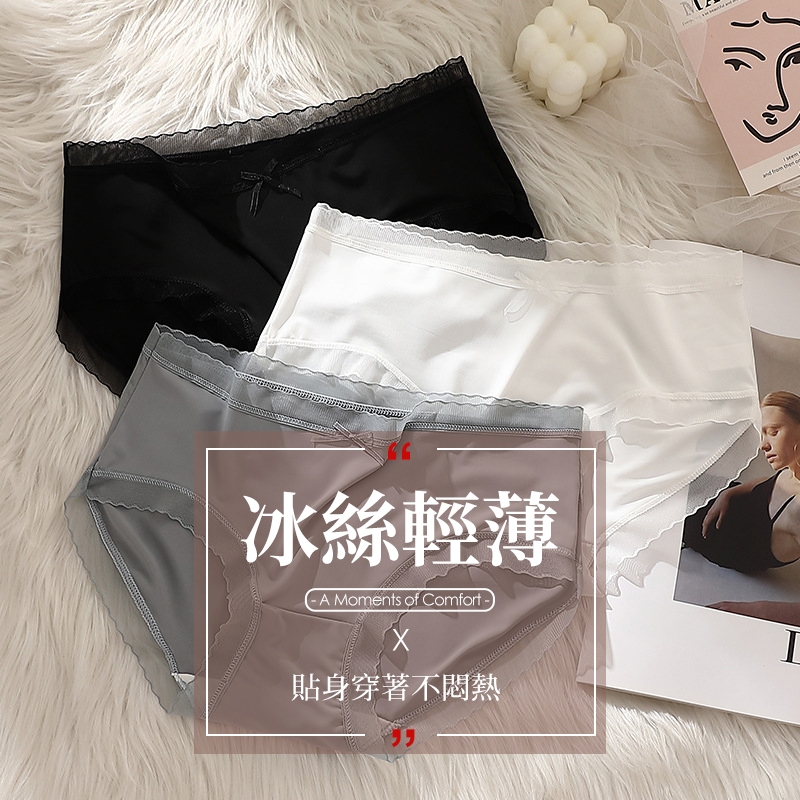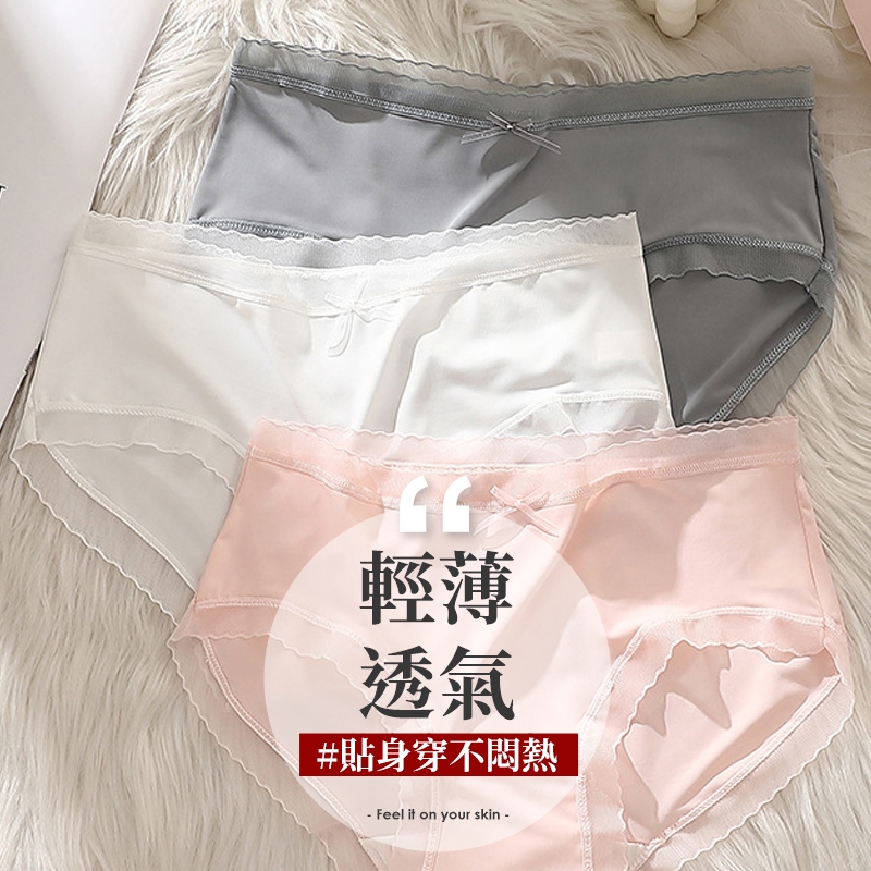 Pure One涼感薄透 冰絲 透氣底部褲抗菌B6125 中腰 台灣出貨 蕾絲內褲 女生內褲 無痕內褲 冰絲涼感內褲