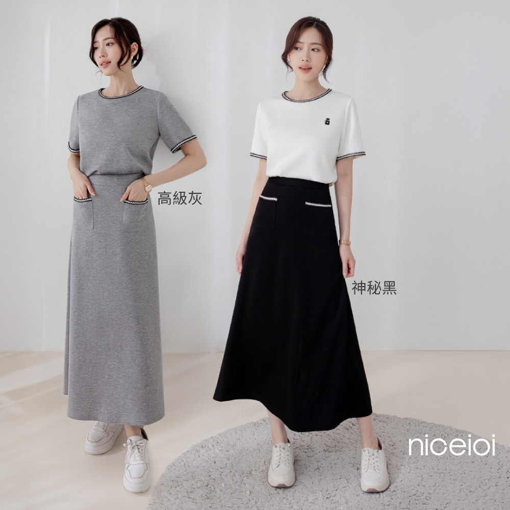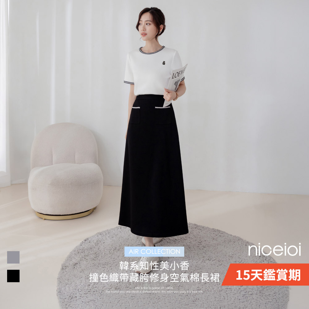 niceioi a字裙 長裙 黑色長裙 黑色 [韓系知性美小香撞色織帶藏胯修身空氣棉長裙] S-XL 超值推薦 女裝小香風a字裙-黑,M|小香風a字裙-淺灰,S|小香風a字裙-淺灰,M|小香風a字裙-淺灰,L|小香風a字裙-黑,L|小香風a字裙-黑,XL|小香風a字裙-淺灰,XL|小香風a字裙-黑,Sniceioi 官方旗艦店