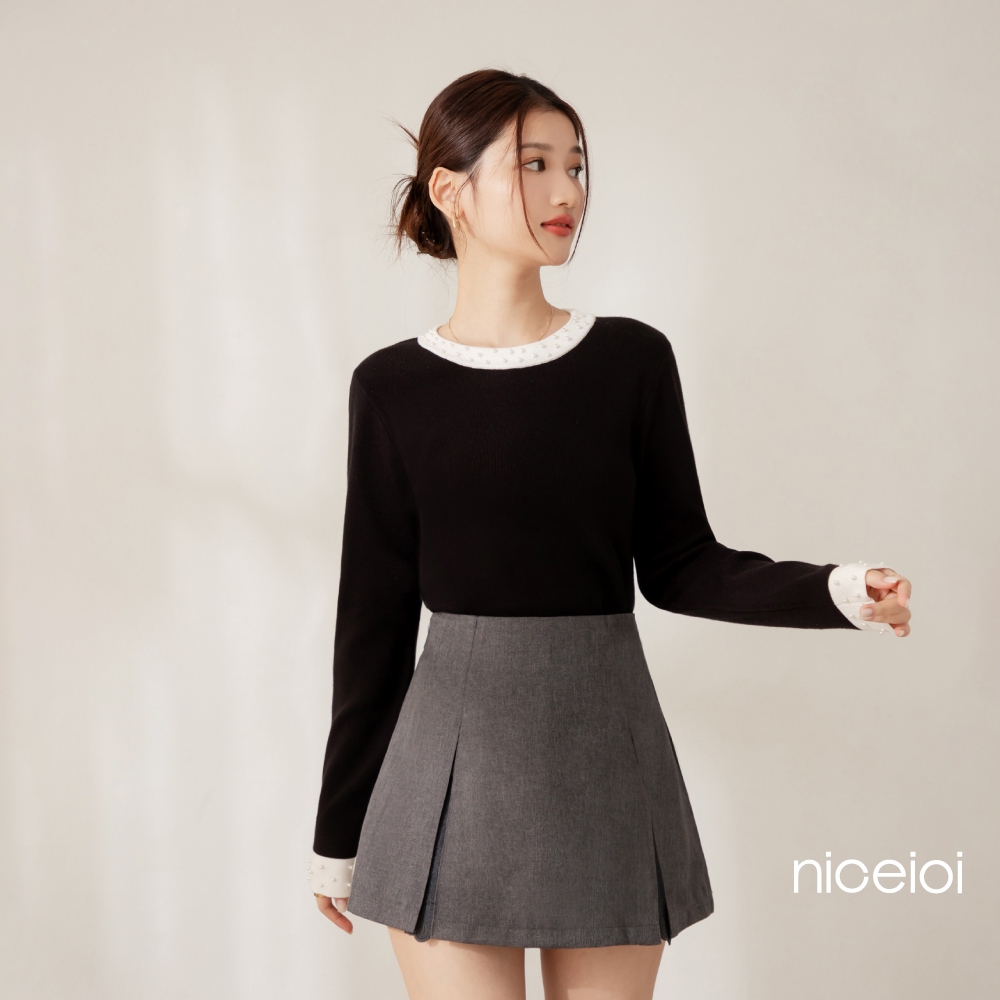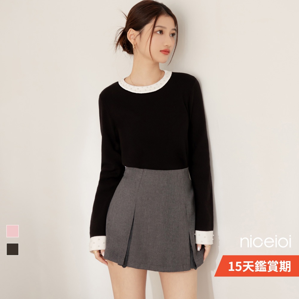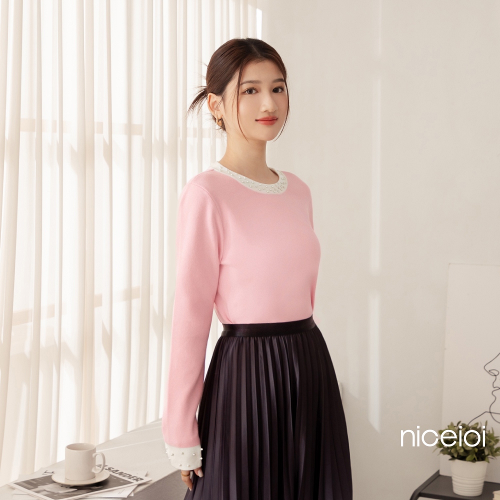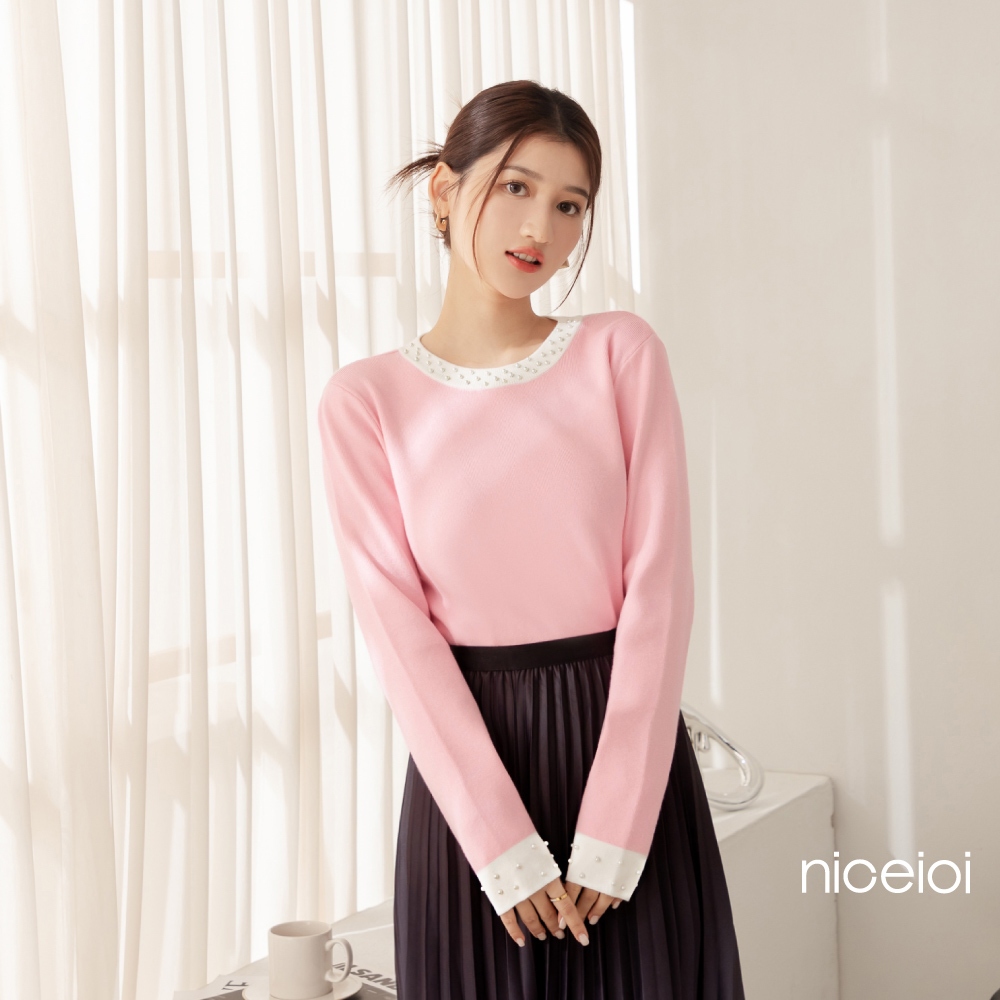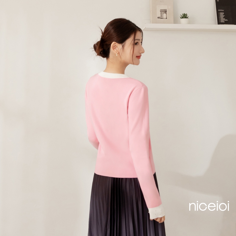 niceioi【特惠】甜姐撞色珍珠邊針織上衣 (共2色) 女裝粉,S|粉,M|粉,L|粉,XL|黑,S|黑,M|黑,L|黑,XLniceioi 官方旗艦店