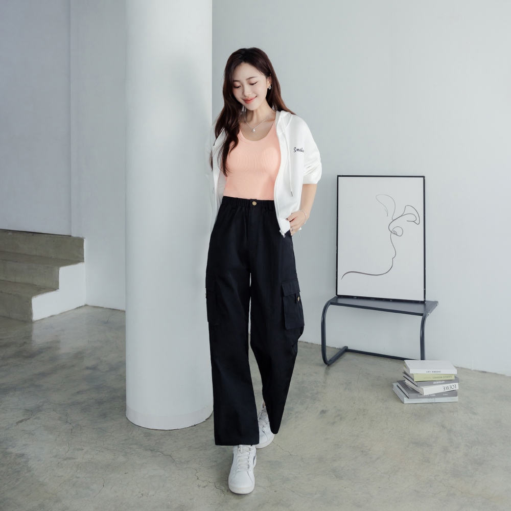 QUEENSHOP_ S 情侶裝 斜口袋造型刷刷工裝長褲 兩色售 1/2/3 現+預 【04101948】