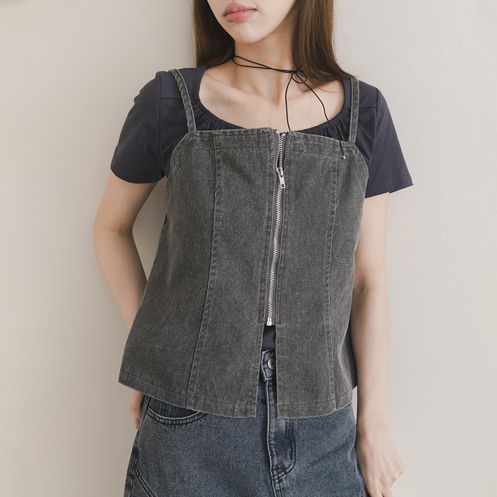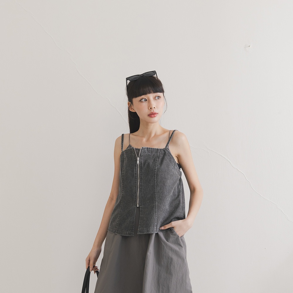 QUEENSHOP_ S 女裝 洗水設計前拉鍊細肩罩衫背心 現+預 【01150450】依賣場Tanks & CamisolesQUEENSHOP