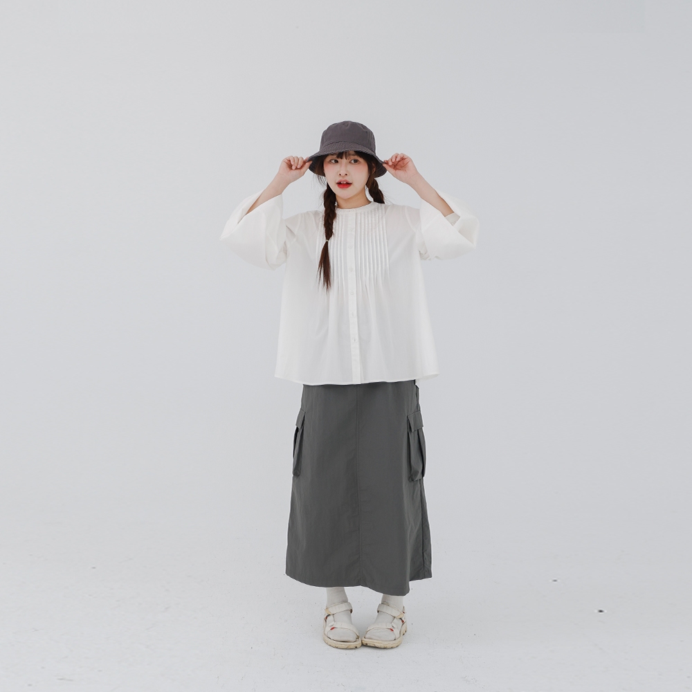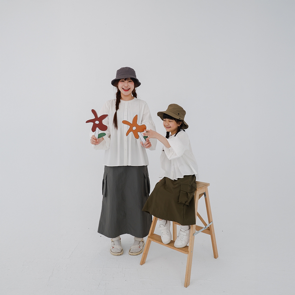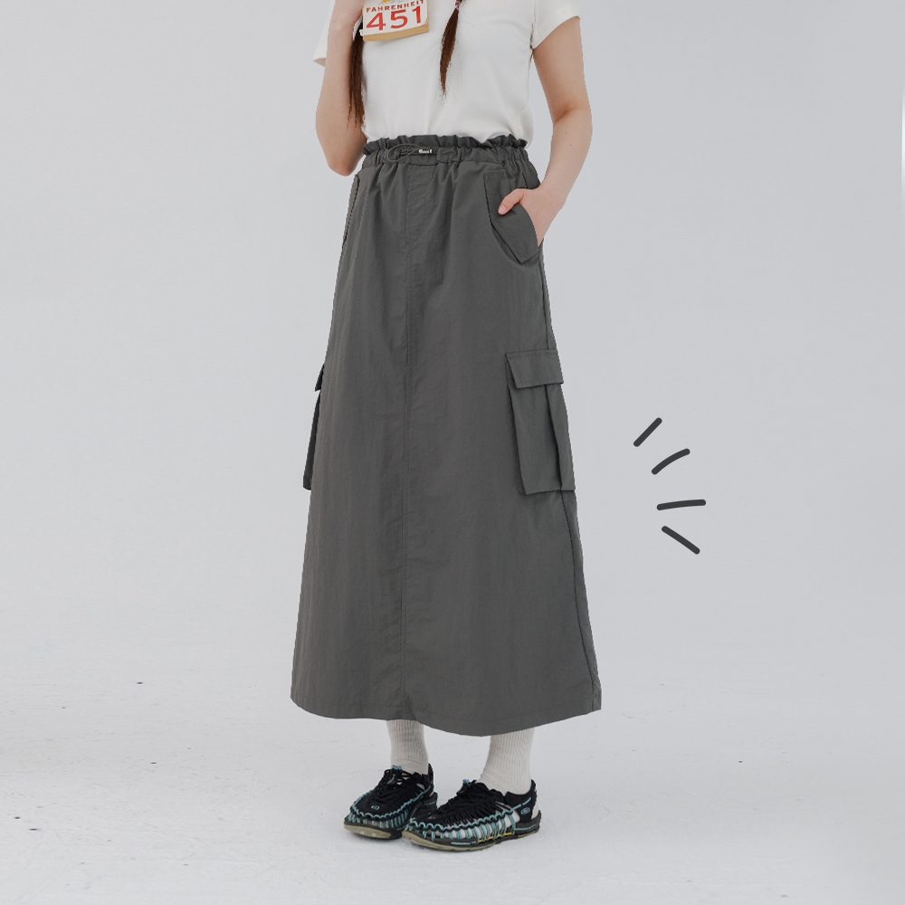 QUEENSHOP_ S 女裝 抽繩荷葉口袋工裝長裙 兩色售 現+預 【03021601】綠|深灰QUEENSHOP