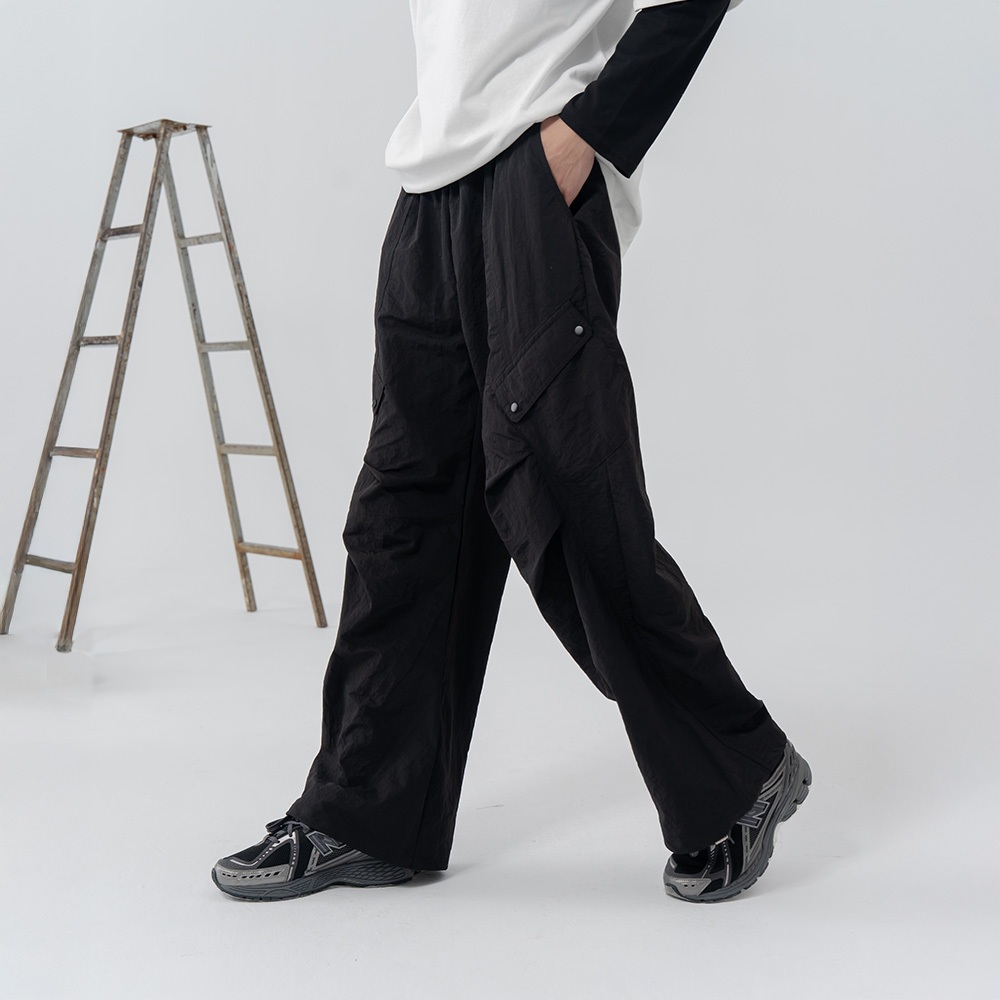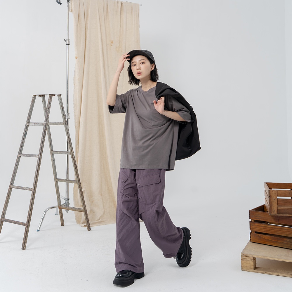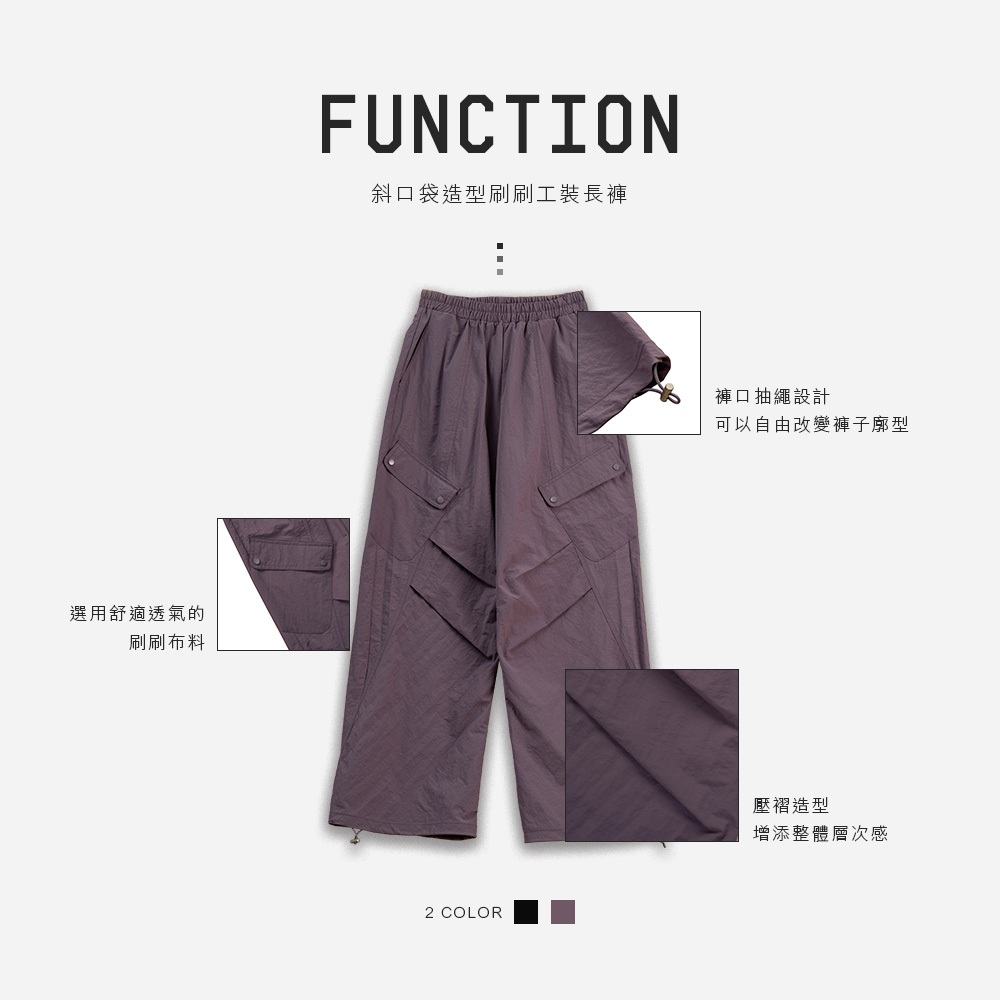 QUEENSHOP_ S 情侶裝 斜口袋造型刷刷工裝長褲 兩色售 1/2/3 現+預 【04101948】黑1|黑2|黑3|紫1|紫2|紫3PantsQUEENSHOP