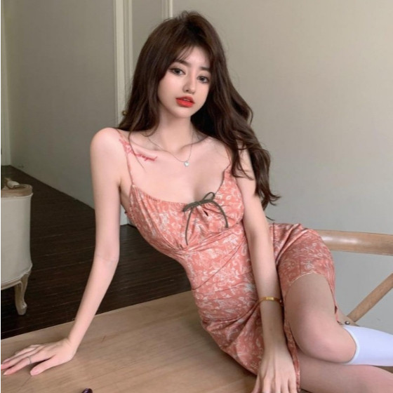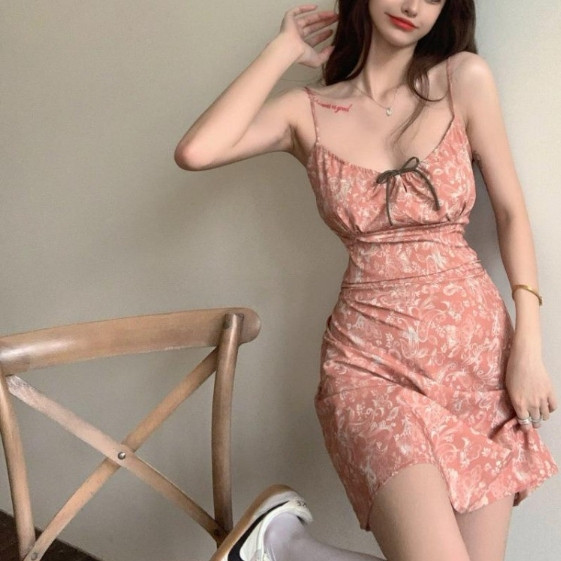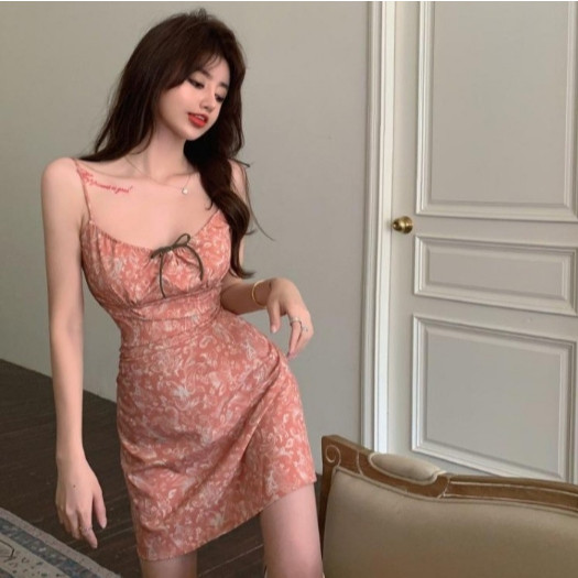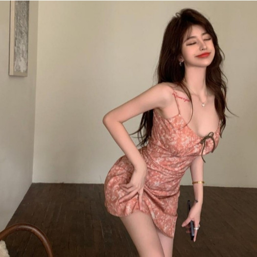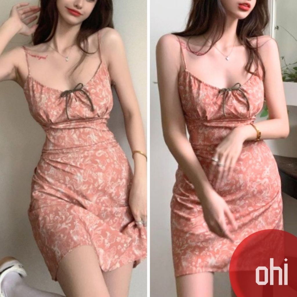 【ohi】高級感小個子辣妹短裙 粉色碎花吊帶連衣裙 辣妹夜店穿搭 連衣裙 連身裙 短裙 洋裝 女裝 GKD209圖片色,S|圖片色,M|圖片色,L|圖片色,XLOHI衣著