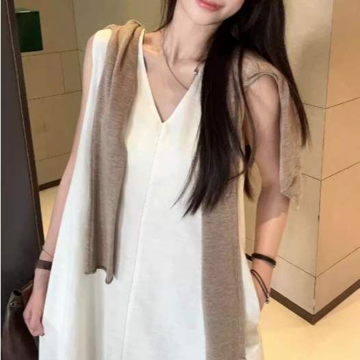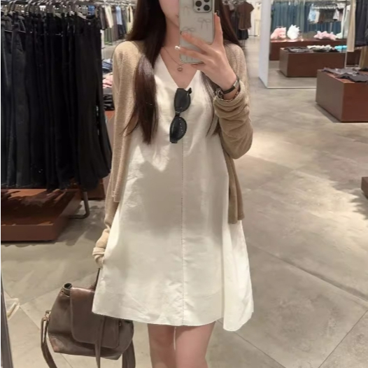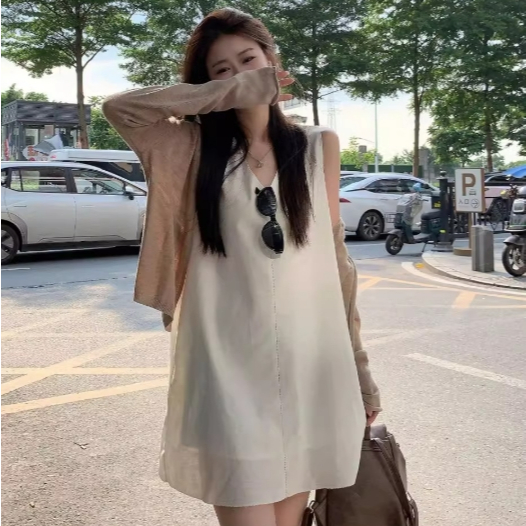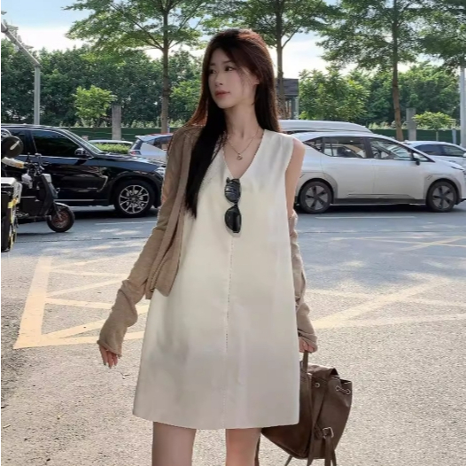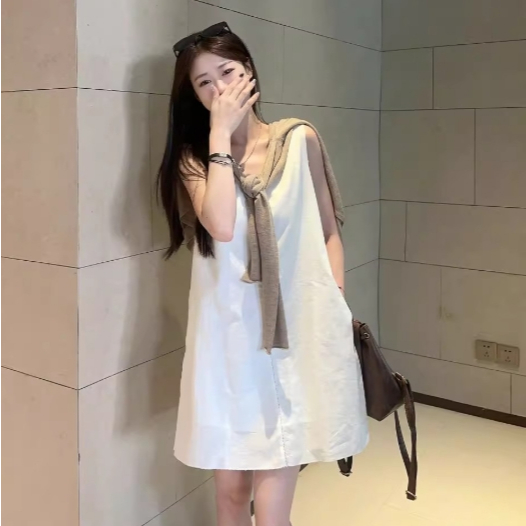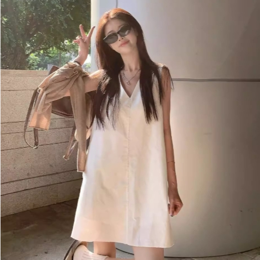 【ohi】無袖背心V領連身裙 簡約純色寬鬆顯瘦短裙 連身裙 短裙 裙子 洋裝 連衣裙 女裝 GKD263白,S|白,M|白,L|白,XL|白,2XLOHI衣著