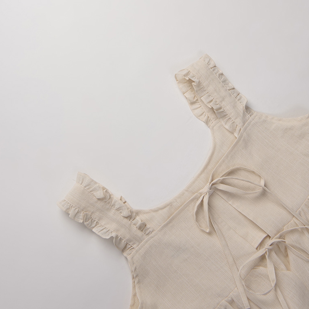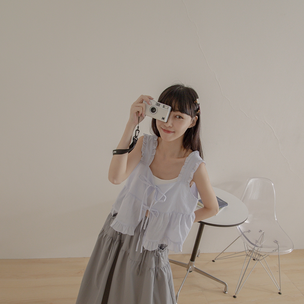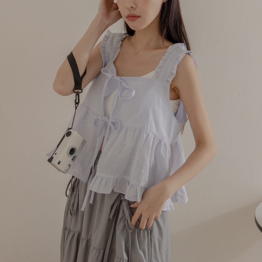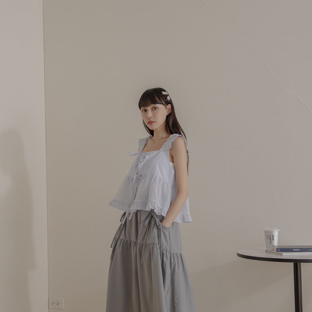 QUEENSHOP_ S 女裝 前雙綁帶格紋荷葉造型外搭背心 兩色售 現+預 【01098410】杏|淺藍OthersQUEENSHOP