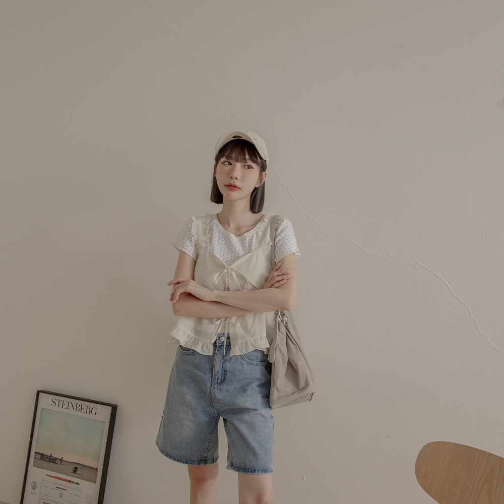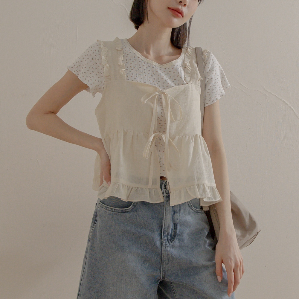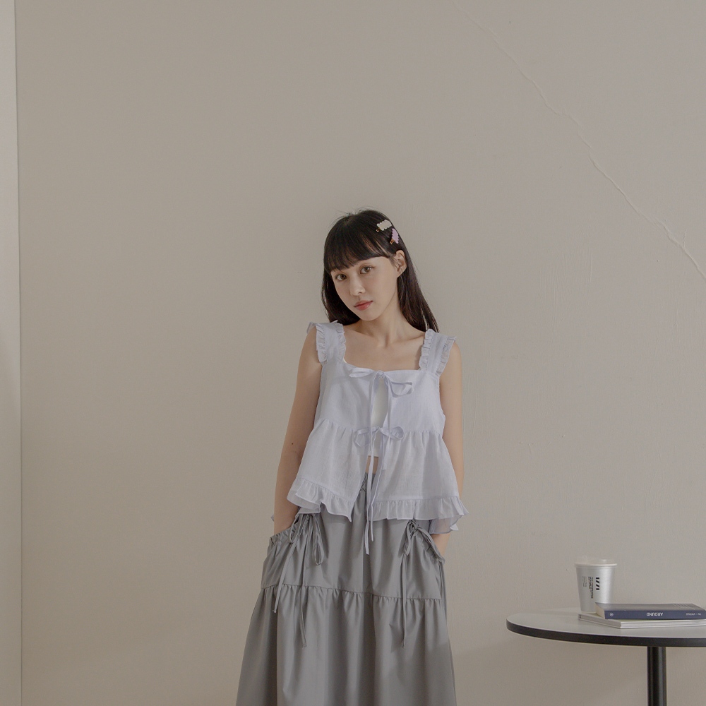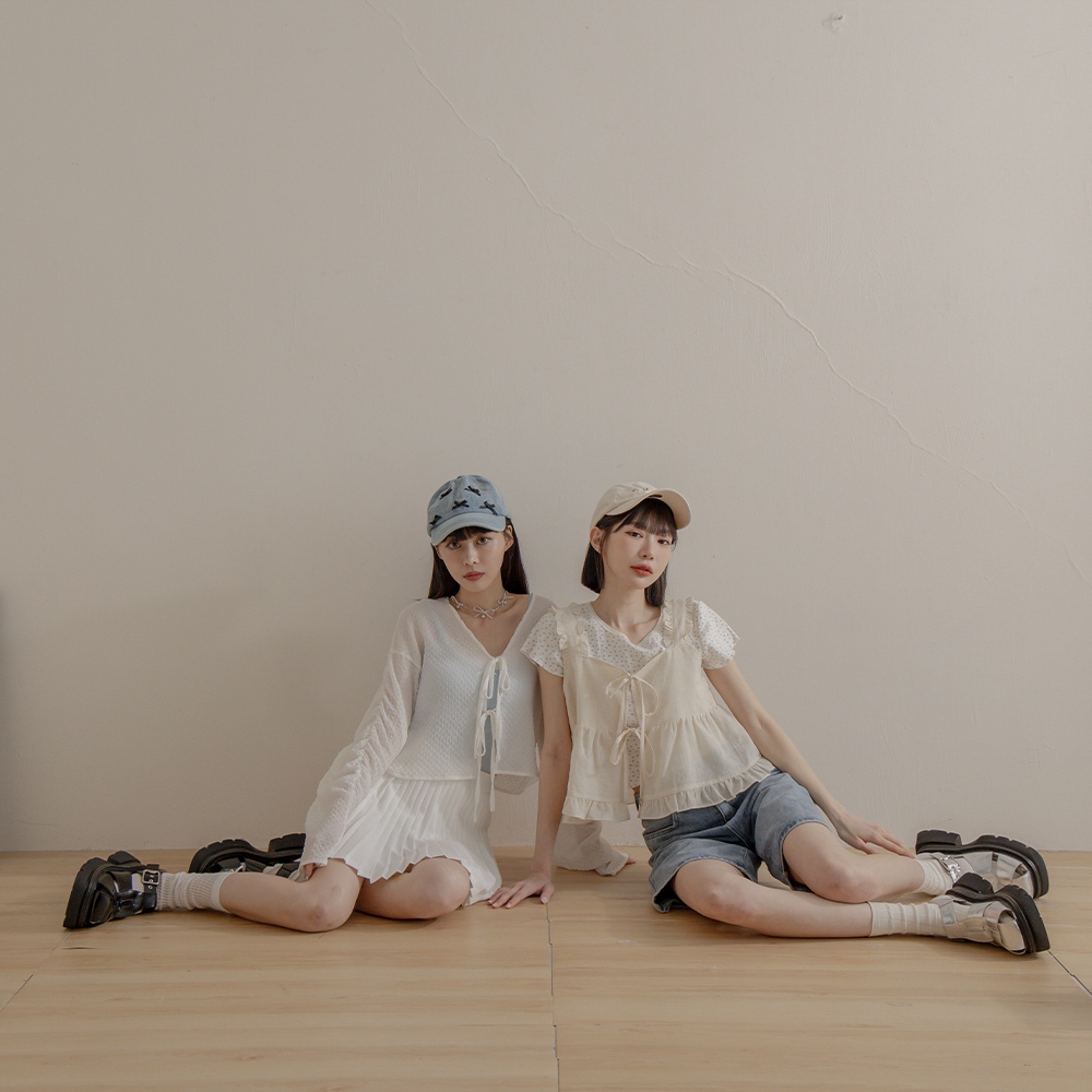 QUEENSHOP_ S 女裝 前雙綁帶格紋荷葉造型外搭背心 兩色售 現+預 【01098410】杏|淺藍OthersQUEENSHOP