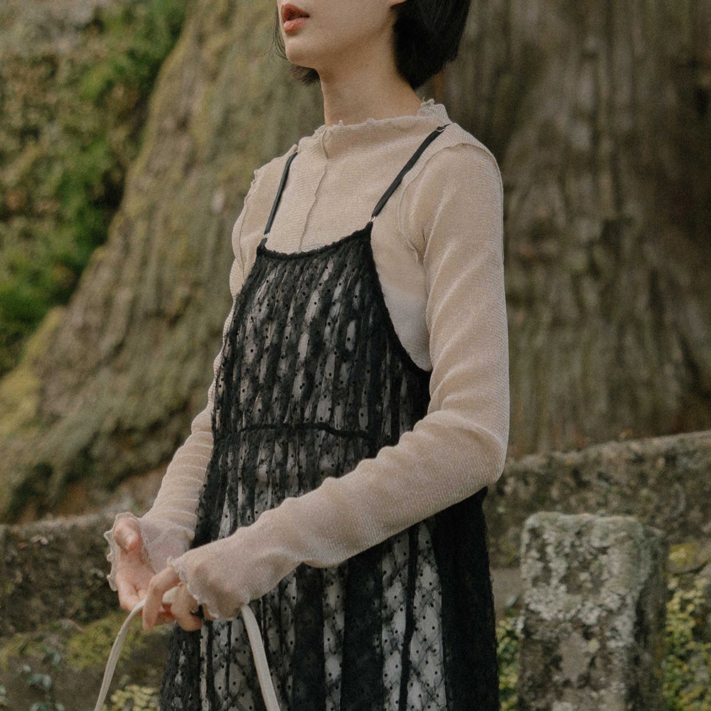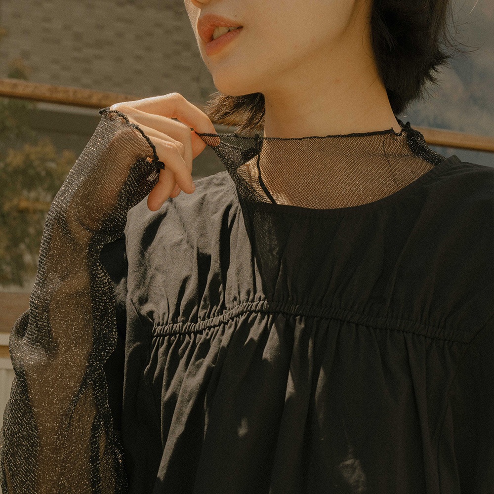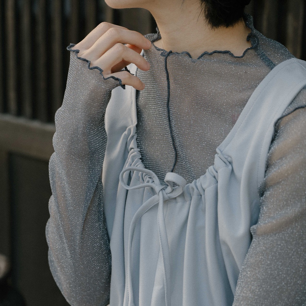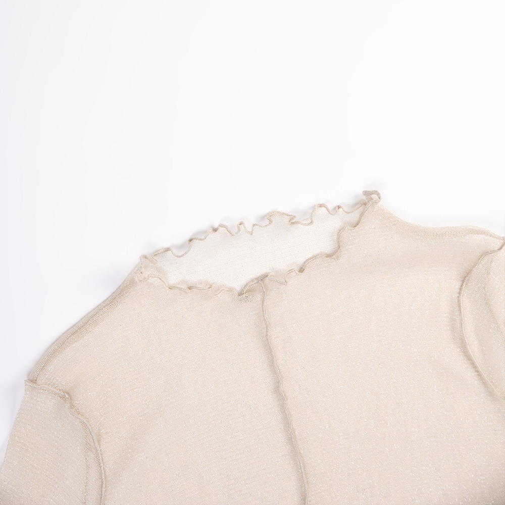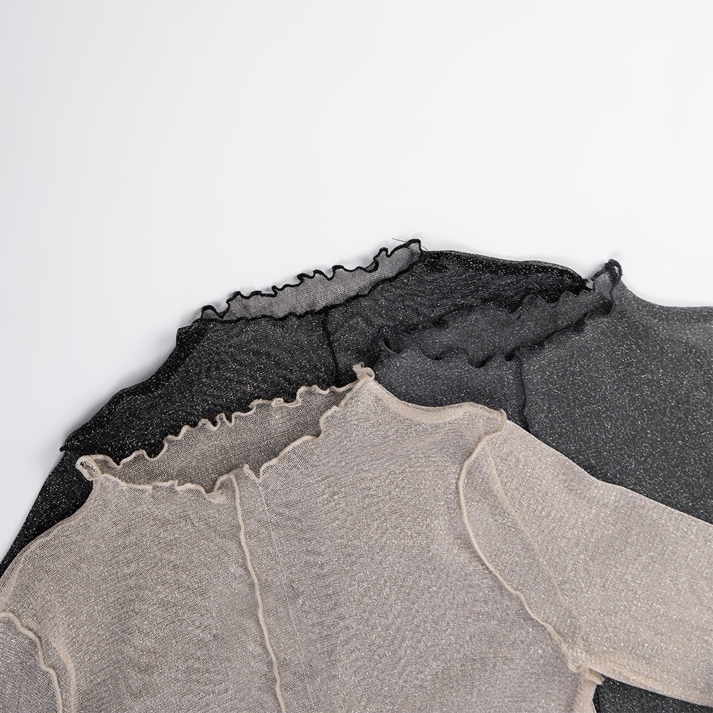 QUEENSHOP_ F 女裝 長袖 金蔥木耳邊高領透膚上衣 三色售 現+預 【01098428】黑|杏|灰藍OthersQUEENSHOP