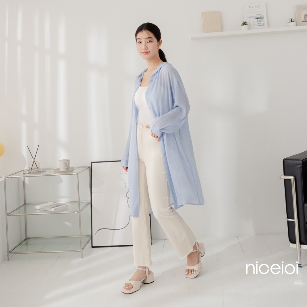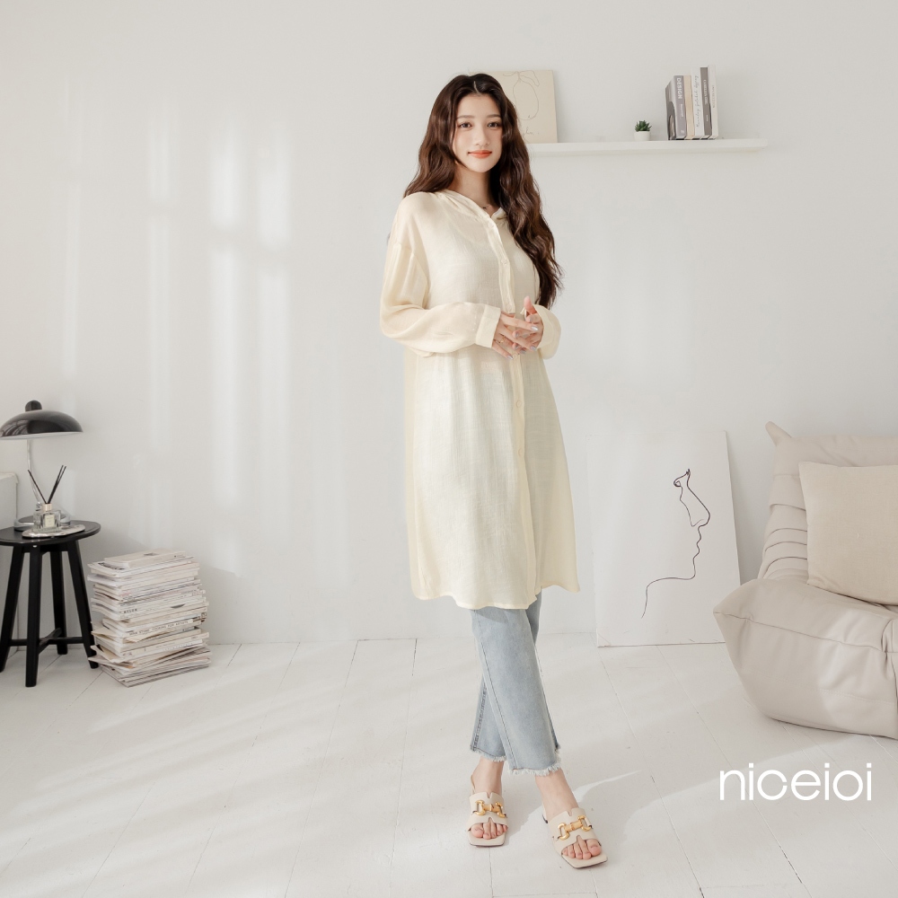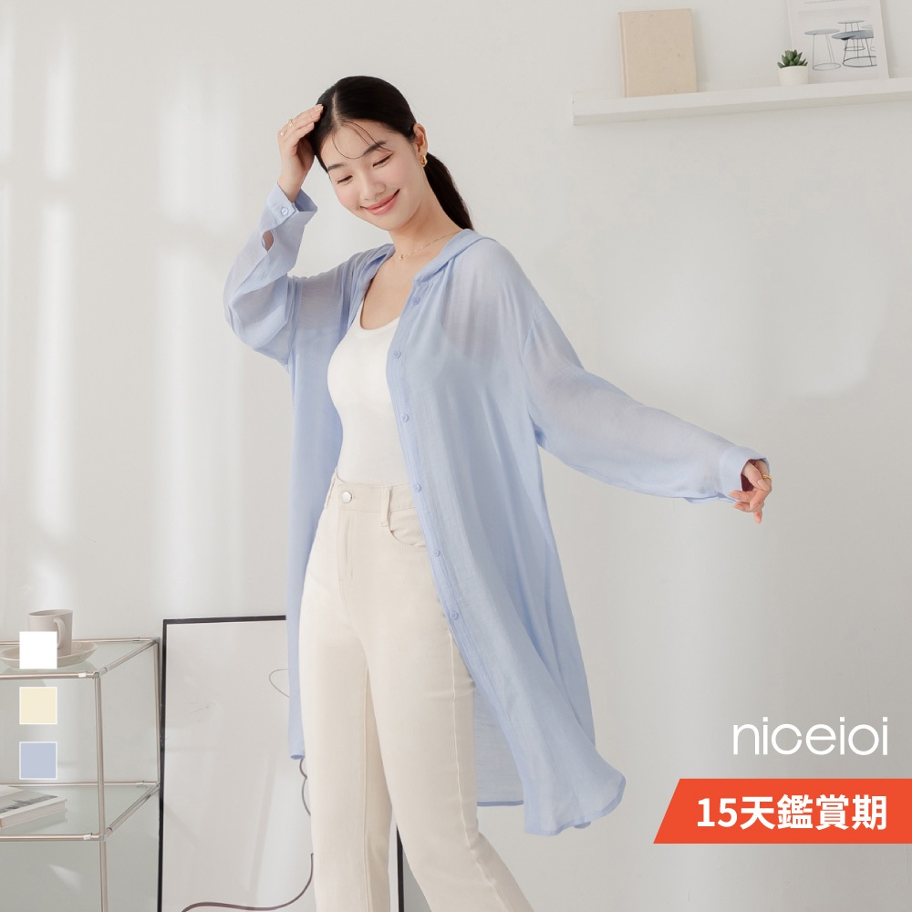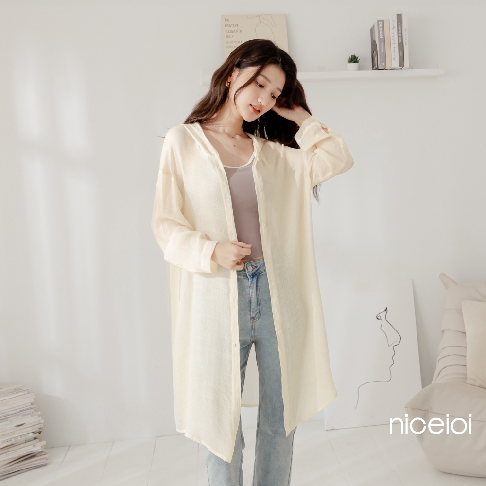 niceioi【特惠】隨性透膚連帽長版仿棉麻外套 (共3色) 女裝米,M|藍,S|藍,M|白,S|白,M|米,SOthersniceioi 官方旗艦店